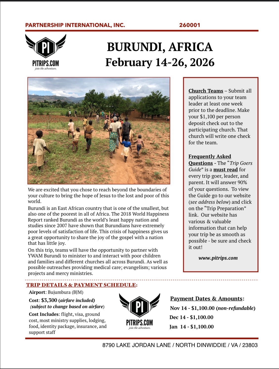 I’m excited to share that I have the incredible opportunity to travel to Burundi, Africa from February 14–26 with Partnership International on a missions trip. At 21 years old, I feel deeply honored to be part of a team that will be serving communities in meaningful and lasting ways.