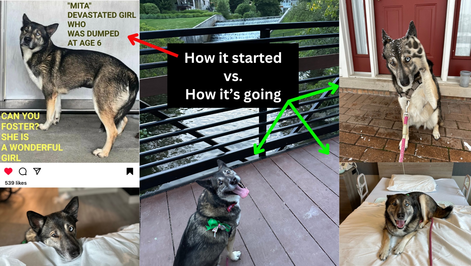 I'd like to introduce you to Foster Dog Mita, my sweet Siberian Husky-German Shepherd mix, who has been my loyal companion during a tough time. We’ve spent the past year in Michigan, where I've been helping my family through a difficult medical emergency. Through it all, Mita has been a constant source of emotional support—not just for me, but for everyone around her. Her gentle spirit and protective heart have made such a difference.