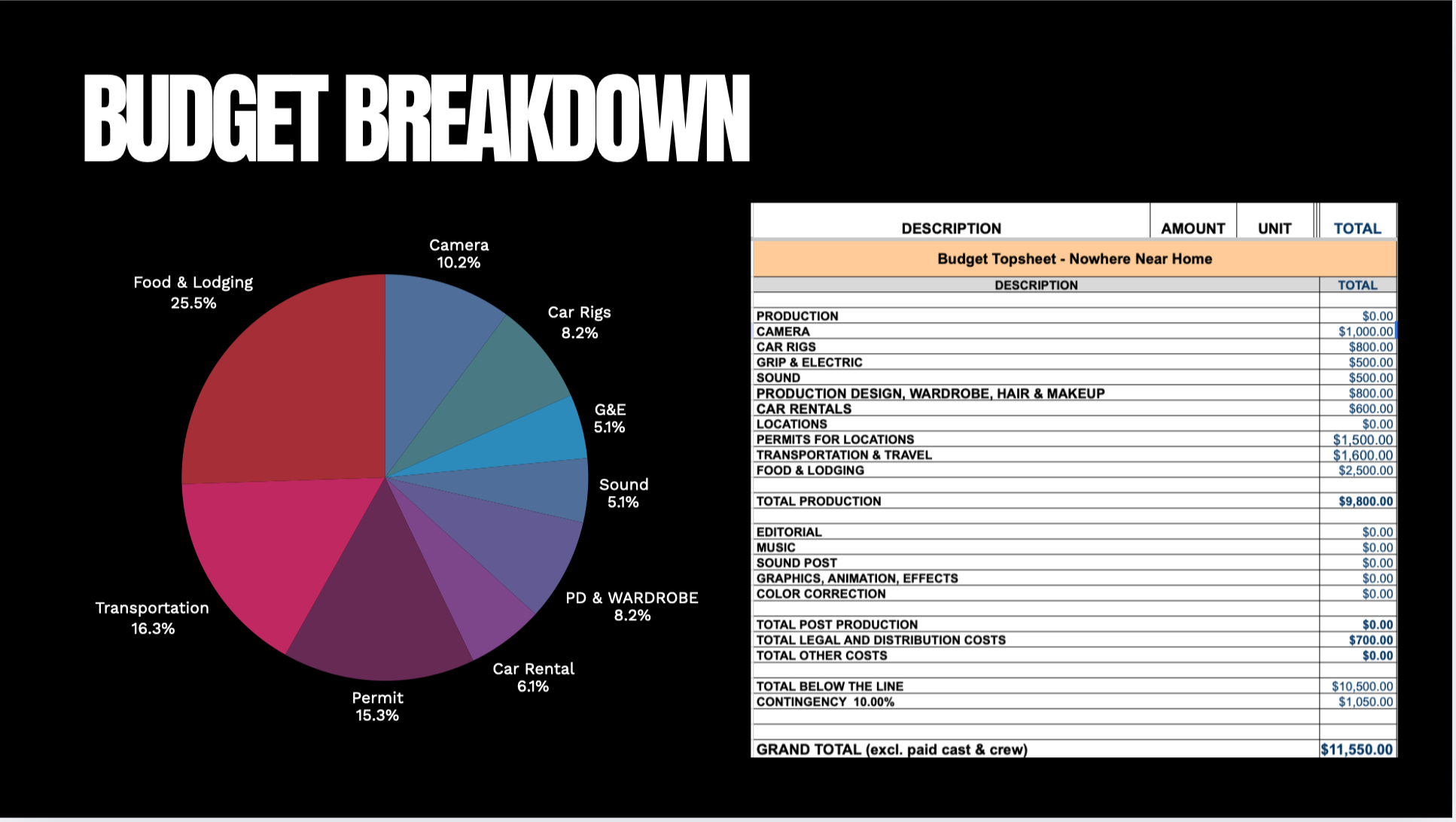 Production Design, Wardrobe, Hair & Makeup ($800)