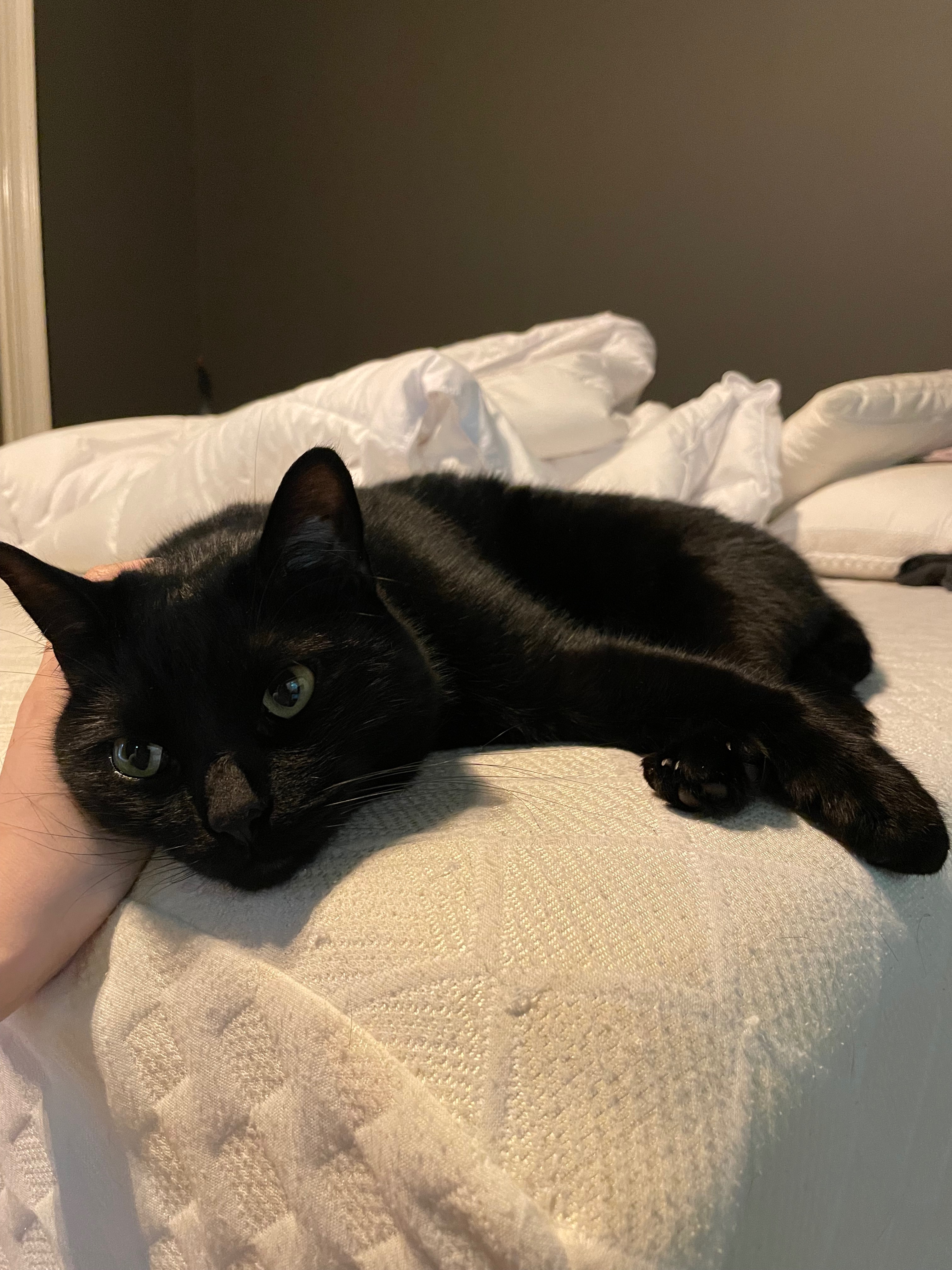 My beloved cat Pat has gone missing, and I am desperate to bring him home. Pat is a black, short-haired cat, about 7 years old, with a friendly personality and a high-pitched meow that sounds more like chirps and trills. He was last seen wearing a red collar. Pat has been my companion through some of the darkest times in my life, and his presence is the reason I was able to recover and keep moving forward after surviving several self-unaliving attempts. Everything I have worked on since then has been for him, and he is truly my family.