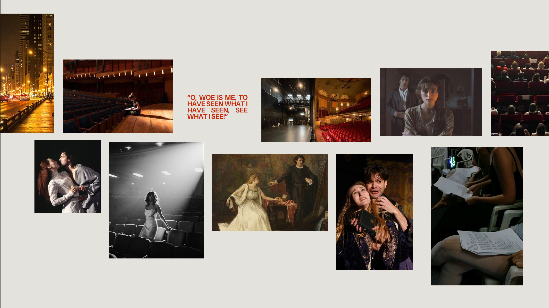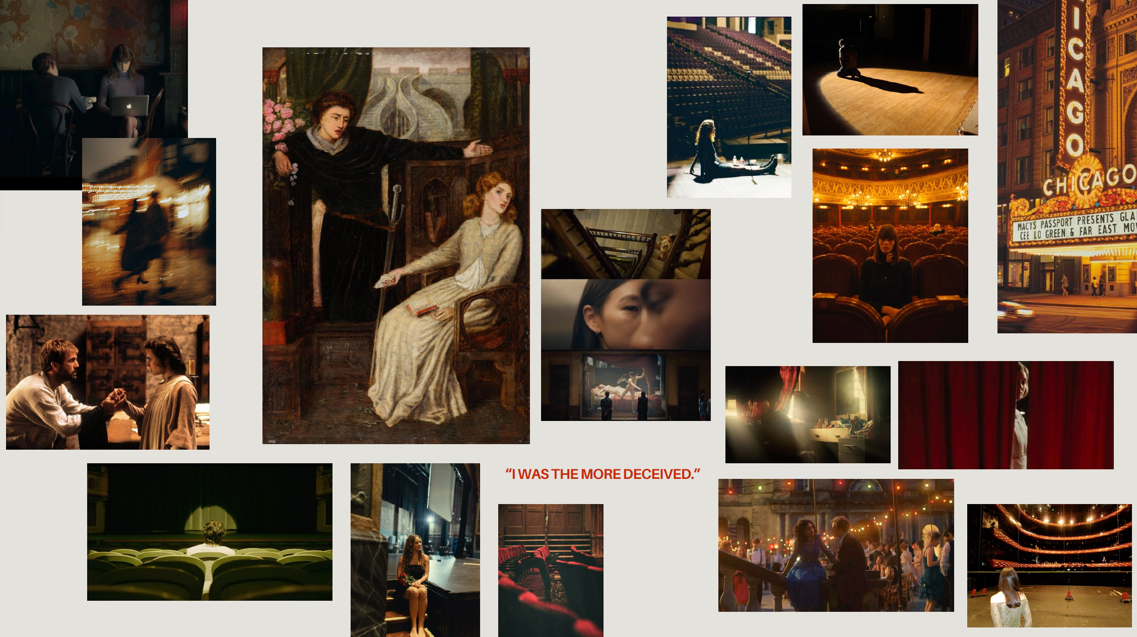 We believe theatre is the perfect metaphor for emotional limbo, where memory, performance, and truth overlap. Stylistically, the film will be introspective, emotionally strained, and visually poetic, blending multiple art forms into a raw, layered, and unforgettable experience. Drawing inspiration from Past Lives, Fleabag, Moulin Rouge, and One Day, the work aims to resonate as both intimate and universal. Taking inspiration from an iconic Shakespeare play, we not only honor something timeless and classic but also help audiences connect with new media in ways that feel both fresh and familiar.