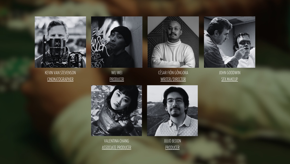 EOL is supported by a strong team that not only resonates with the narrative but also has professional track records in filmmaking. A story developed by award winning writer/director César Fión Góngora, whose work is recognized by major film festivals in North and Central America as well as Europe. Wu Wei contributes his extensive experience in producing both short and feature length films. Julio Bedon is a project manager and line producer with a strong background in audiovisual production, marketing, and creative leadership. Valentina Chang brings a holistic view of the creative pipeline, encompassing development, marketing, and production. Cinematographer Kevin Van Stevenson brings over a decade of experience behind the camera, having worked for various national media companies creating original content for TV and film. With special effects make-up by the Emmy Award winner John Goodwin, who's work can be seen in films such as The Thing, Men in Black and TV shows such as CSI.