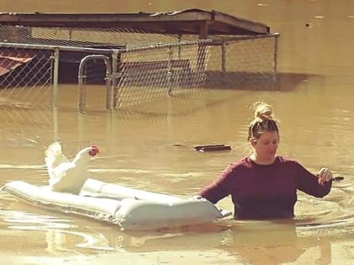 This picture says it all…anyone who knows her is well aware that Britney is the most generous kind of person. While her own property continued to sink deeper under the waters, she rescued the remaining few living chickens for her neighbor. She will help anyone at any time. All of my life, she has been there to support our family during times of need. Now, she is the one with needs.