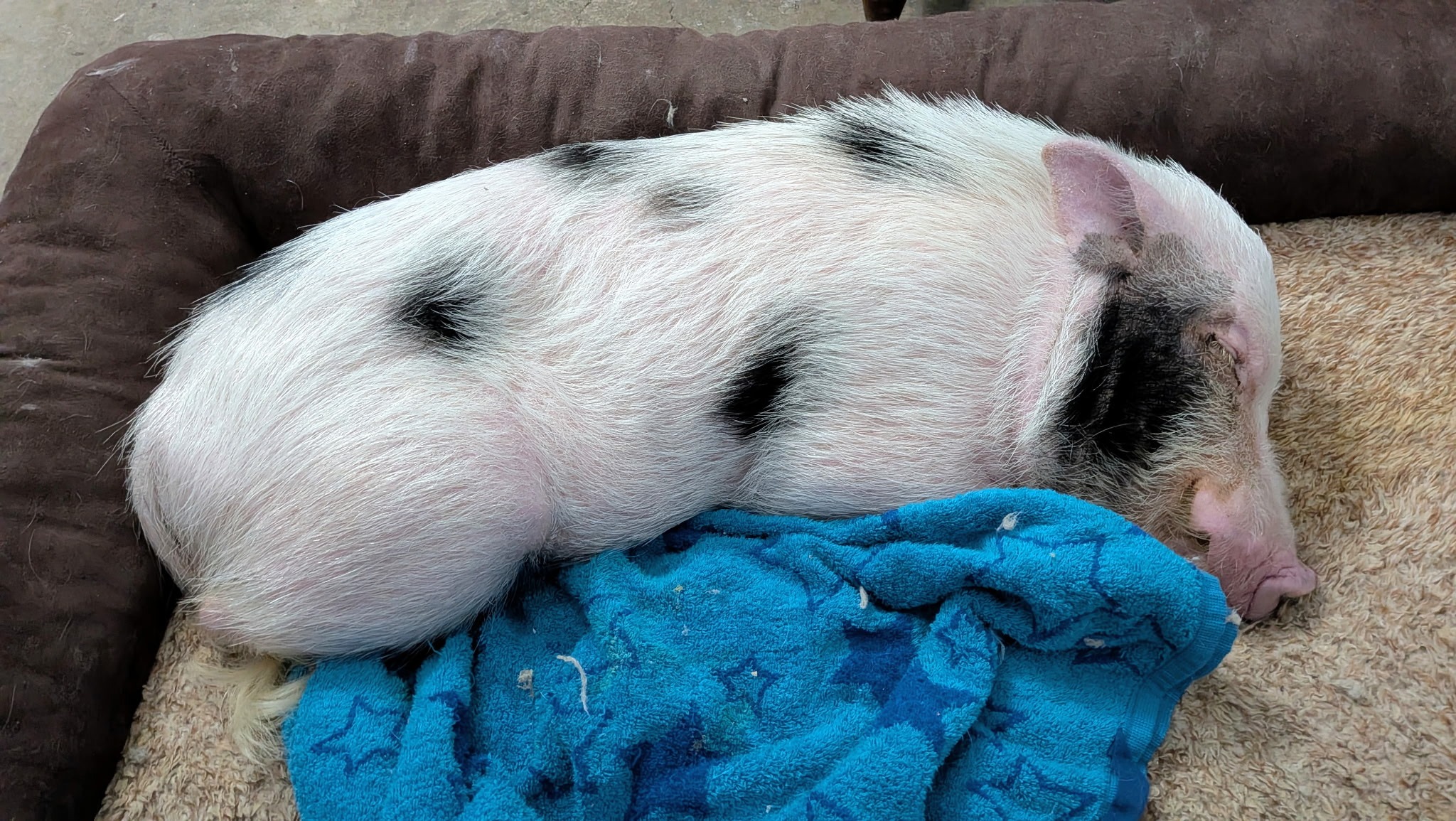 Howdy my name is Victor my son Xander and I have a companion pet pig named Bruce he's one year and 4 months old he's our indoor Pig and recently has become ill. After visiting his primary vet in greenville tx ,the next steps for him are too go to Dr Mullen at Texas A&M in College Station,TX for MRI scans and possible surgery for an obstruction in the intestines