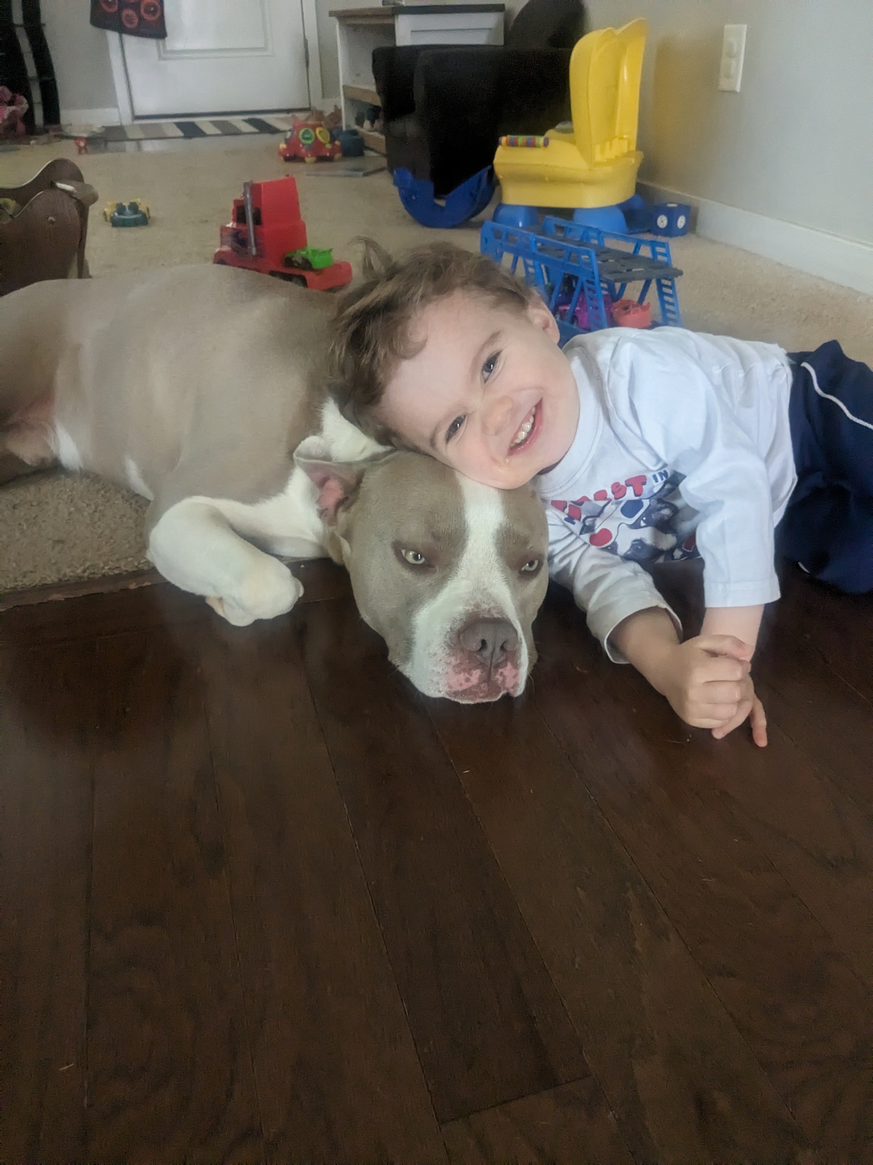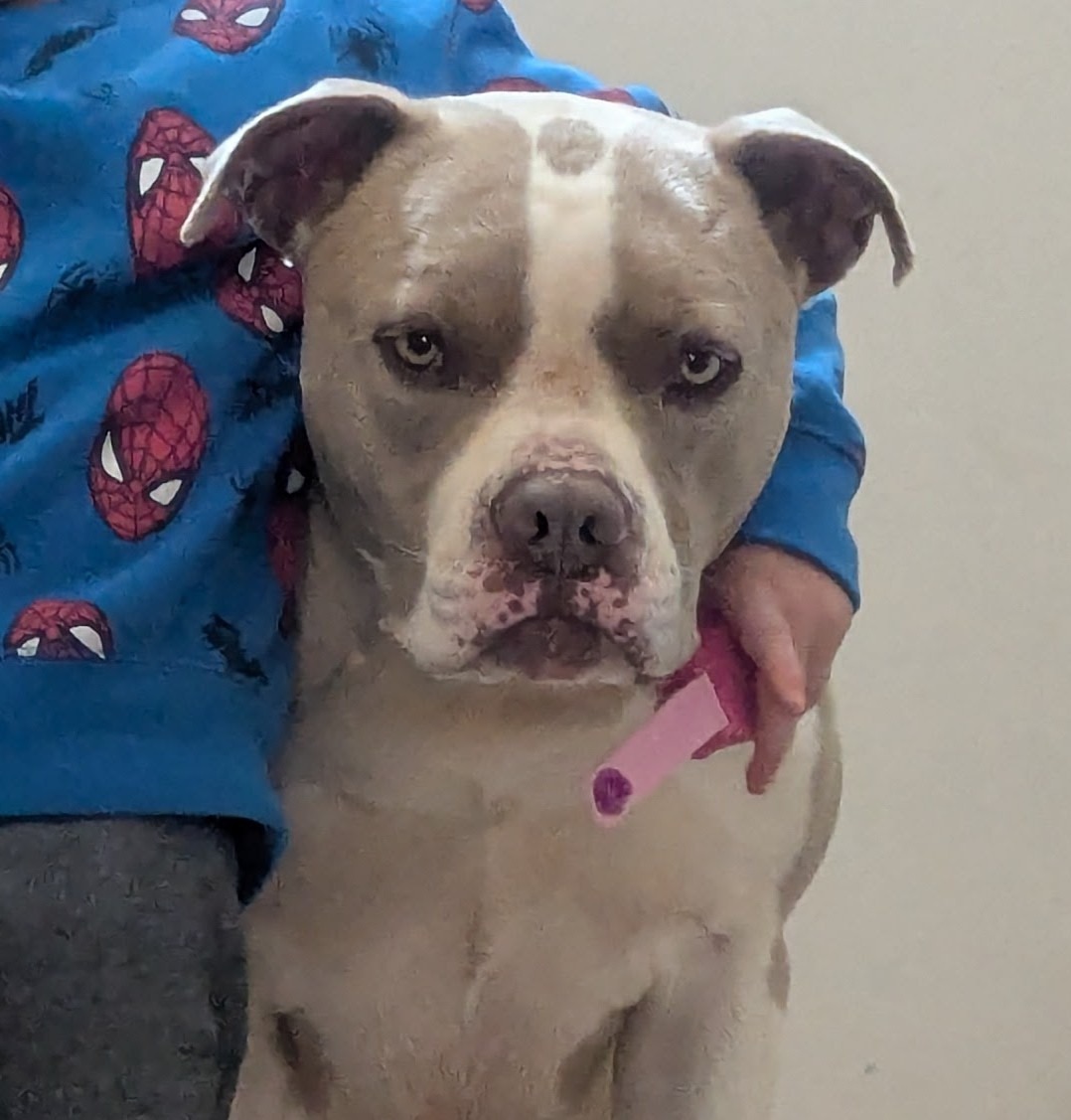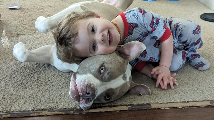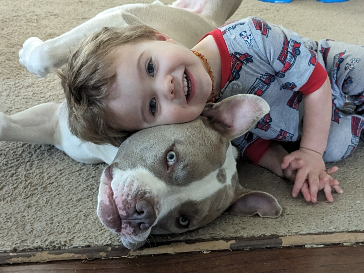 Bruno is our rescue dog, and he’s been a beloved part of our family for the past three years. He was found on the side of the road after he’d been hit by a car, and a friend passed him along to us so he wouldn’t have to spend his life in a shelter. Since then, Bruno has brought so much joy and comfort to our home, especially to my youngest son, Xavi, who relies on Bruno as his emotional support animal. Their bond is truly special, and Bruno’s gentle presence has helped Xavi through some tough times.