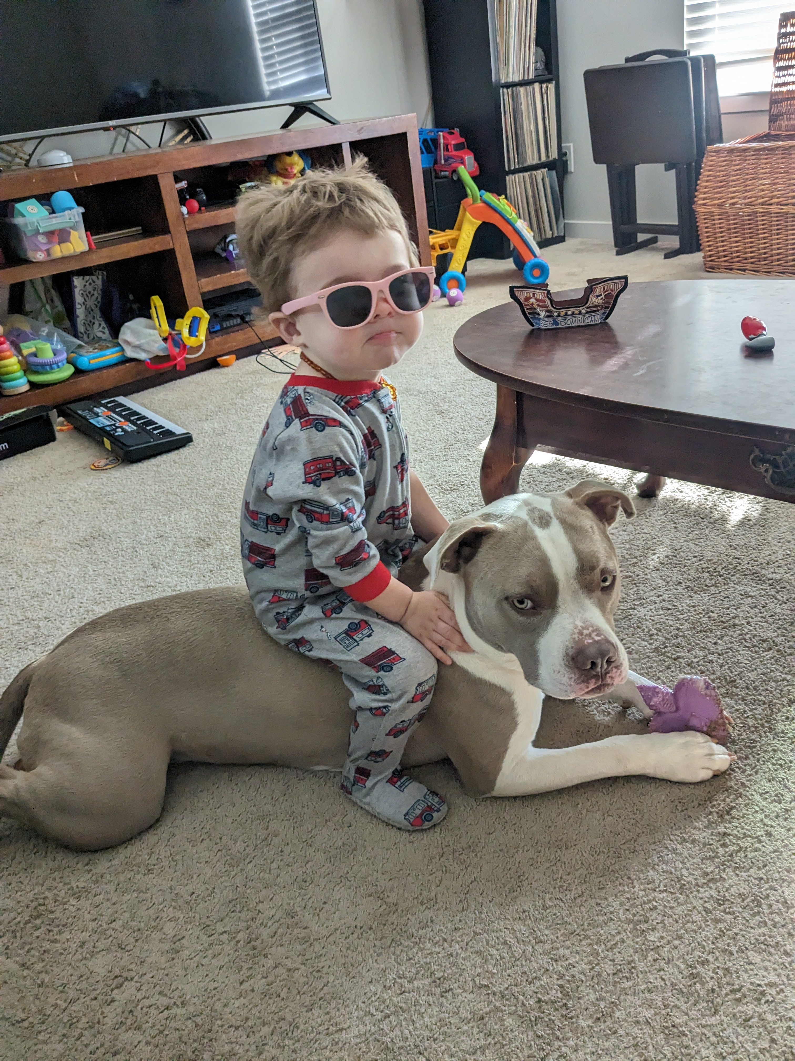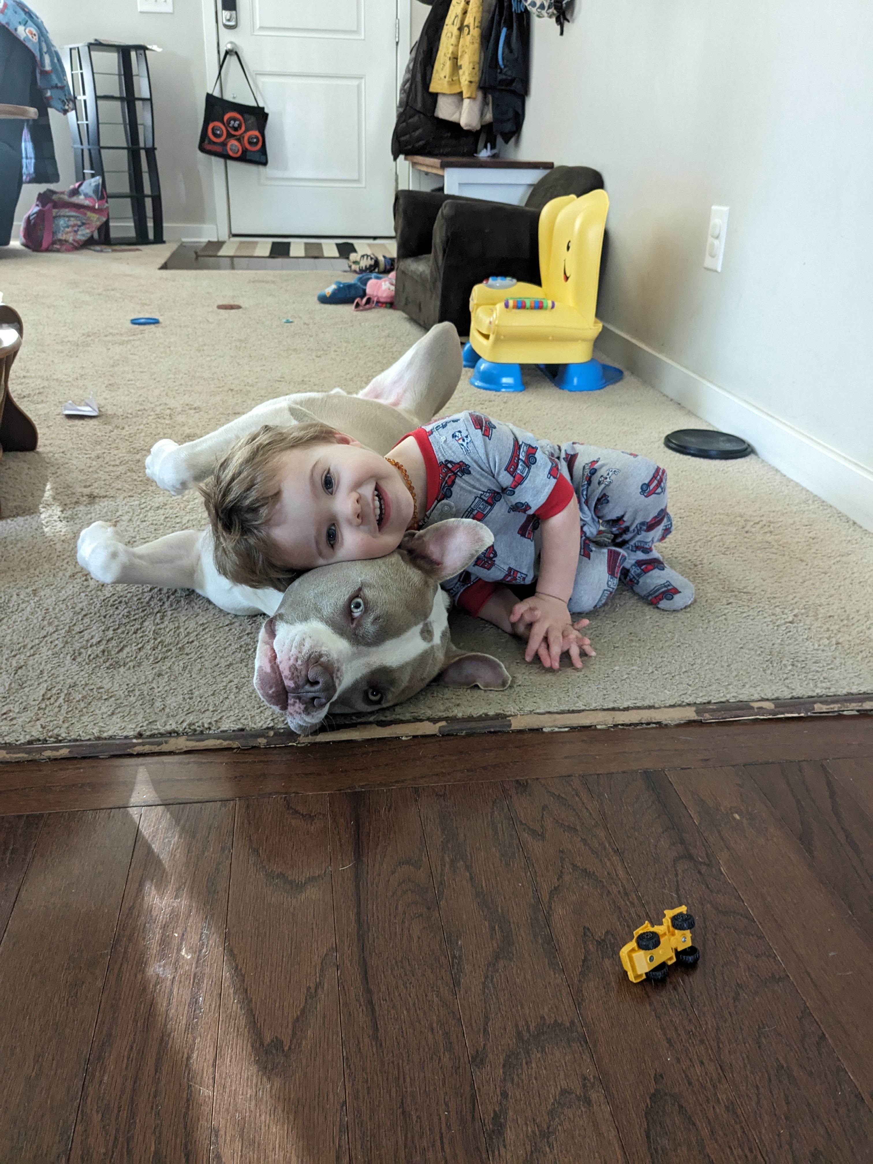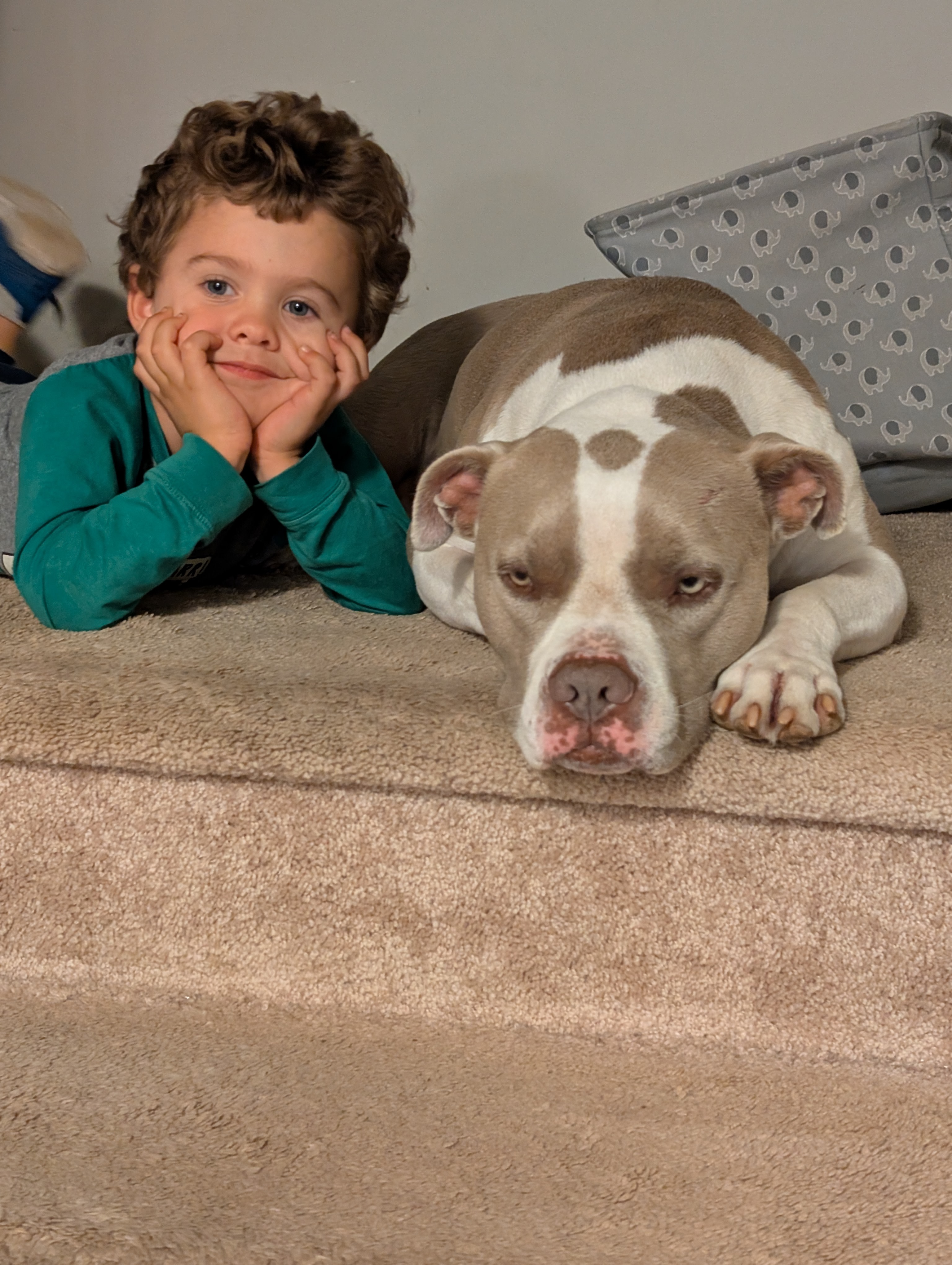 Bruno is our rescue dog, and he’s been a beloved part of our family for the past three years. He was found on the side of the road after he’d been hit by a car, and a friend passed him along to us so he wouldn’t have to spend his life in a shelter. Since then, Bruno has brought so much joy and comfort to our home, especially to my youngest son, Xavi, who relies on Bruno as his emotional support animal. Their bond is truly special, and Bruno’s gentle presence has helped Xavi through some tough times.