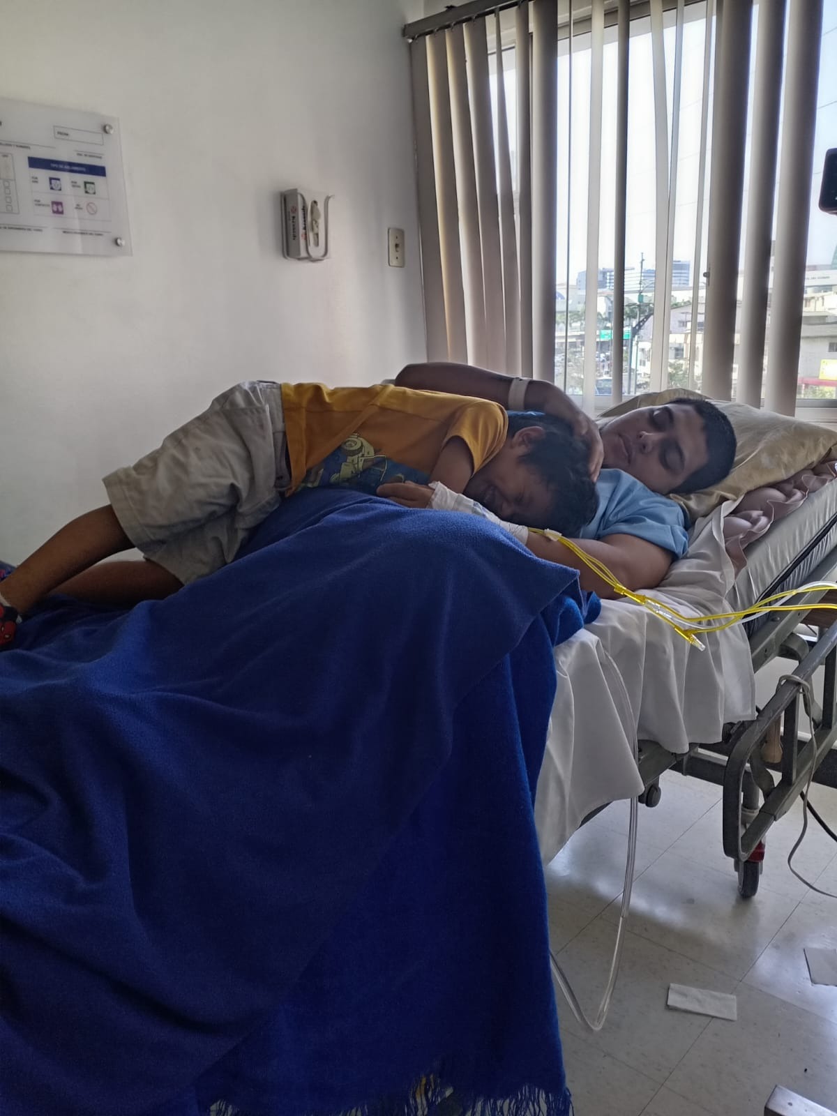 Mi hijo Bryan fue ingresado en el hospital por un tumor en la médula espinal. Lleva seis años padeciendo esta enfermedad y esta es su segunda operación. Ingresó en el hospital hace un mes. Esta vez le desfragmentaron la columna, pero solo le extirparon el 90 % del tumor, por lo que tendrá que someterse a otra operación dentro de unos días para fijar la columna. Hoy en día, sigue luchando contra un tumor que sigue creciendo y debe continuar con el tratamiento oncológico. El dolor causado por la presión del tumor ha desaparecido, pero el daño neurológico causado por el tumor es irreversible. Necesita ayuda constante para satisfacer sus necesidades básicas, ya que su sistema endocrino se ha visto afectado.