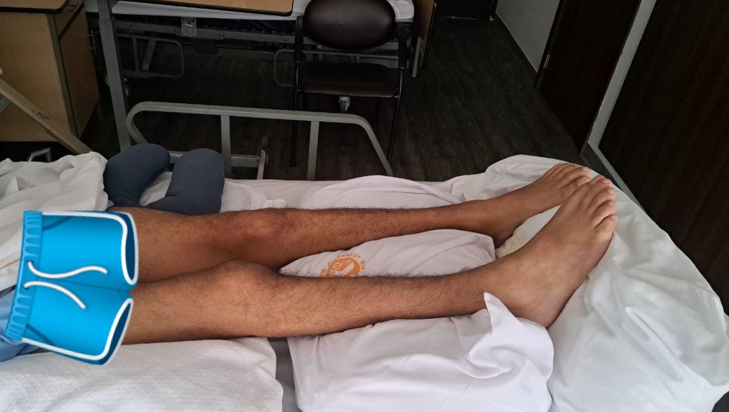 Sugerencia de la terapista mantener sus piernas semi-elevadas para ayudar a que el flujo sanguíneo se regenere.
