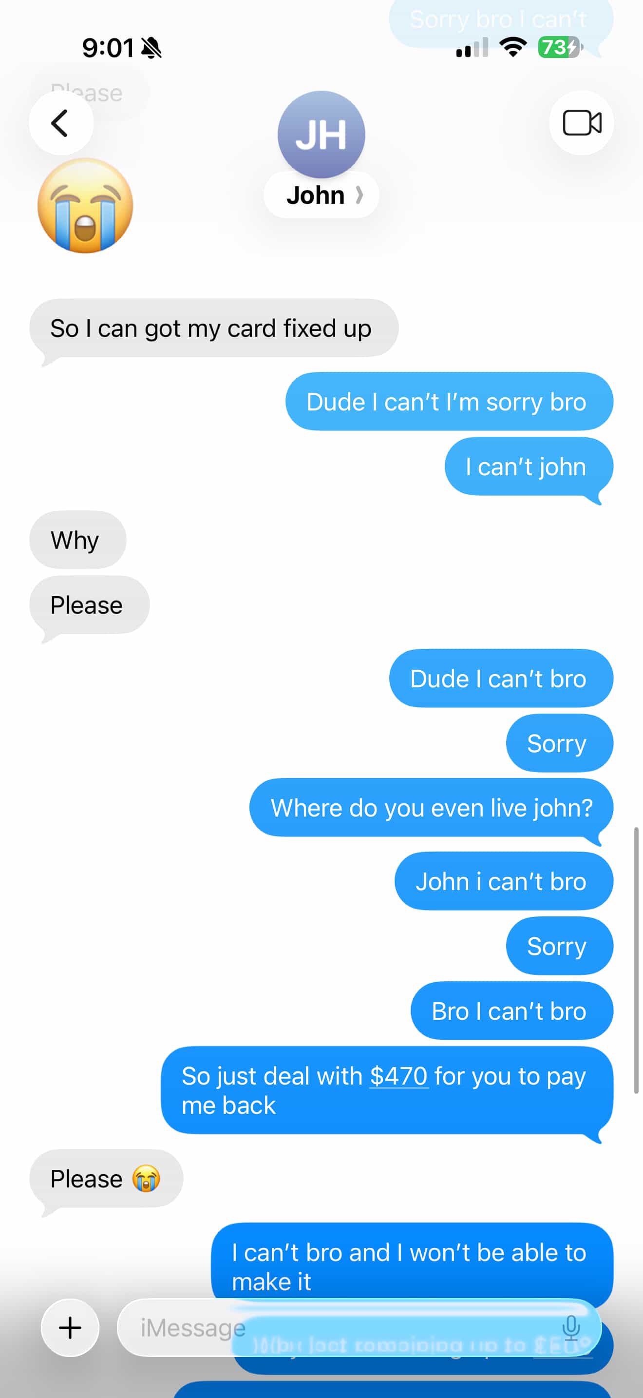 A fake instagram account has been impersonating me, John H, and asking people for money. Bryan Kim unfortunately fell for it. While I had nothing to do with it, I feel accountable.