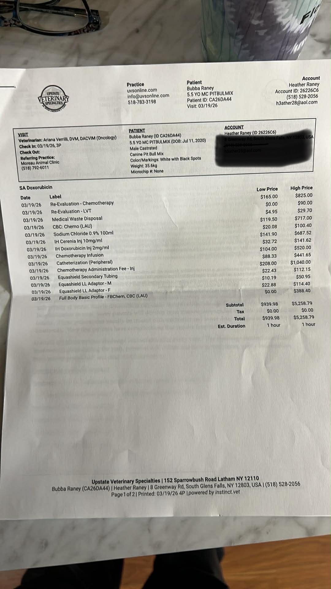 The cost of chemotherapy will be around $5,200 along with some other tests he will need along the way. The estimate is attached.