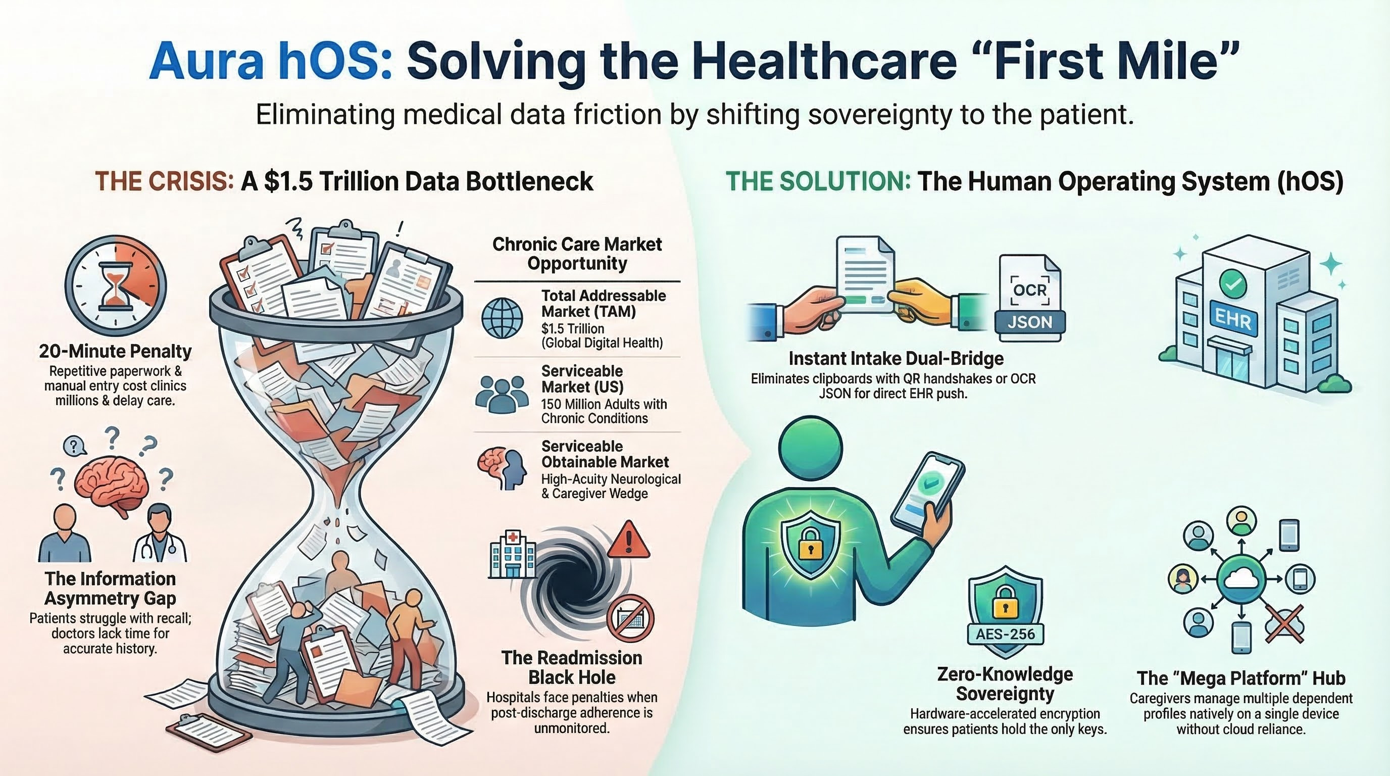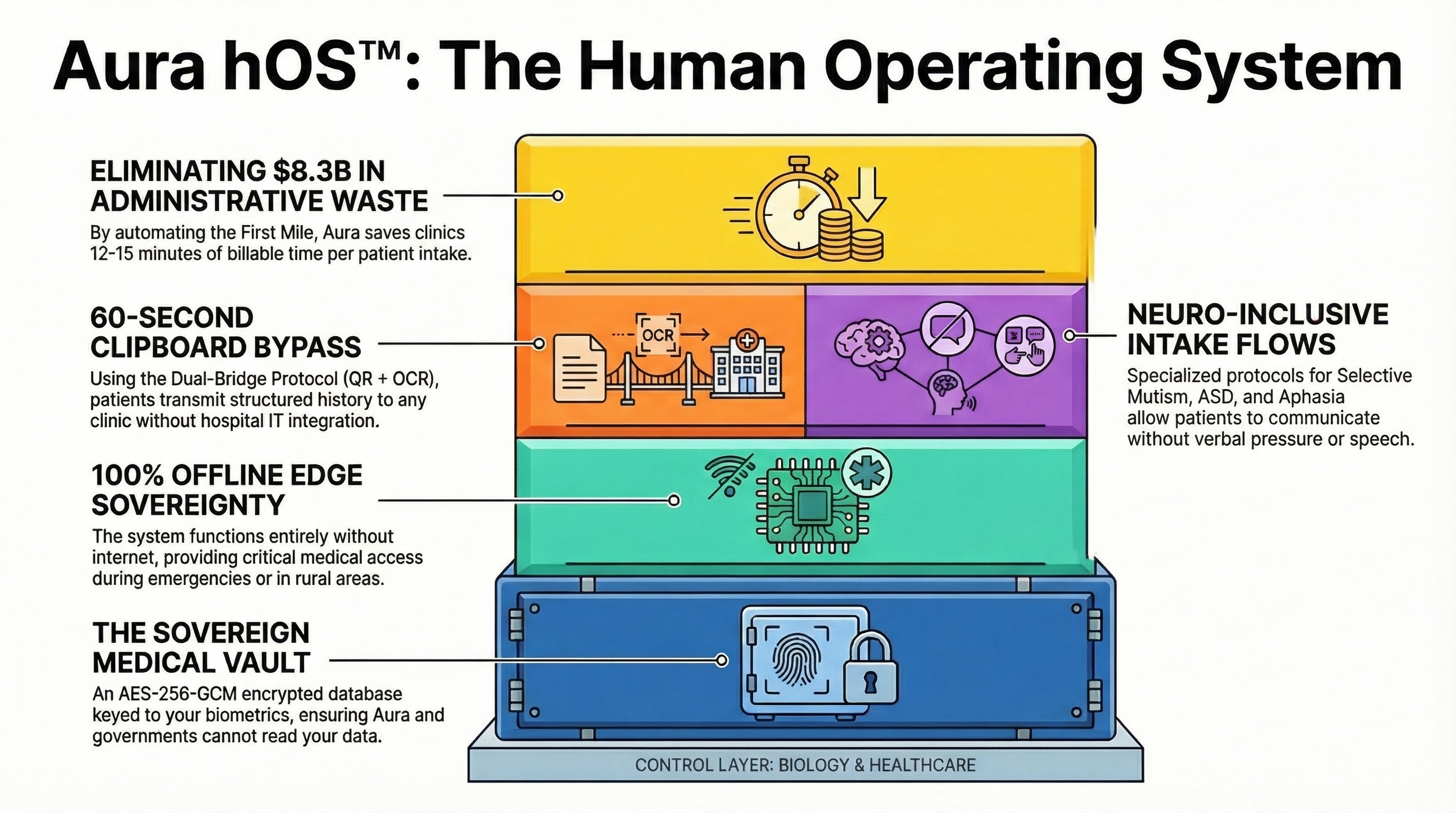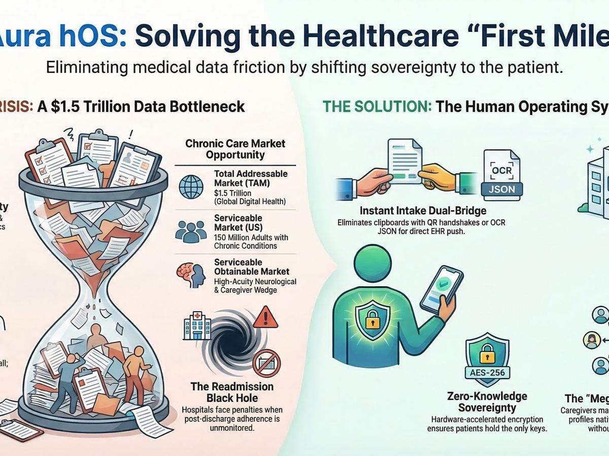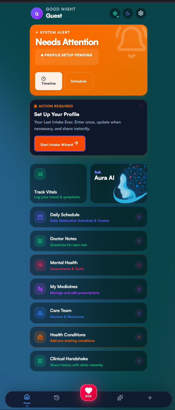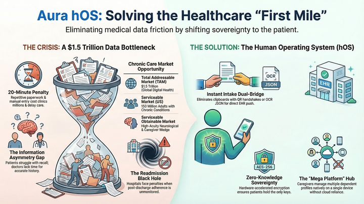 ⚙️ The Solution: I have spent over 2,500 hours independently engineering and self-funding Aura hOS™, a secure, Zero-Knowledge patient data vault designed to give the most vulnerable patients their voice back entirely through their mobile devices.