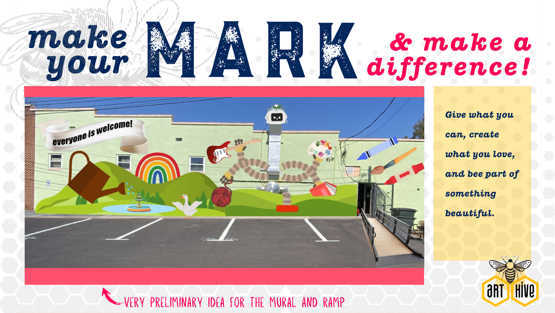 We're building more than a ramp — we're building a welcome mat for everyone. Your support helps make Art Hive truly accessible, so all can enjoy the full experience: grabbing coffee from Cat Nap Roasting Co., browsing handmade treasures, diving into craft projects, exploring local art, and gathering with neighbors in a space that’s buzzing with creativity and connection.