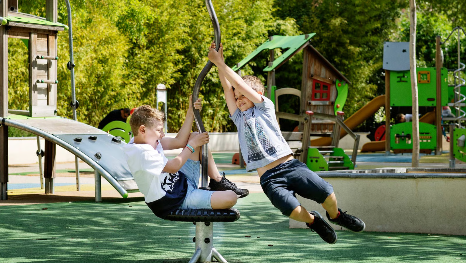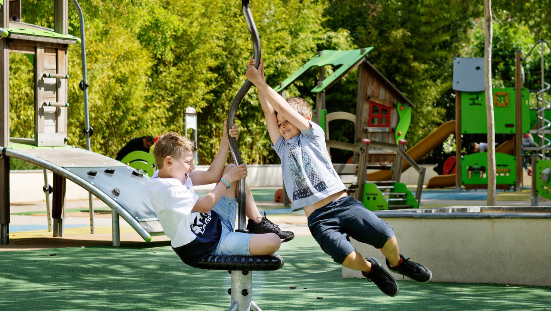 Tous ces équipements sont construits pour durer, avec des garanties de 10 à 20 ans (selon les pièces), ce qui signifie qu'il s'agit d'un investissement qui donnera de la joie à des générations d'enfants.