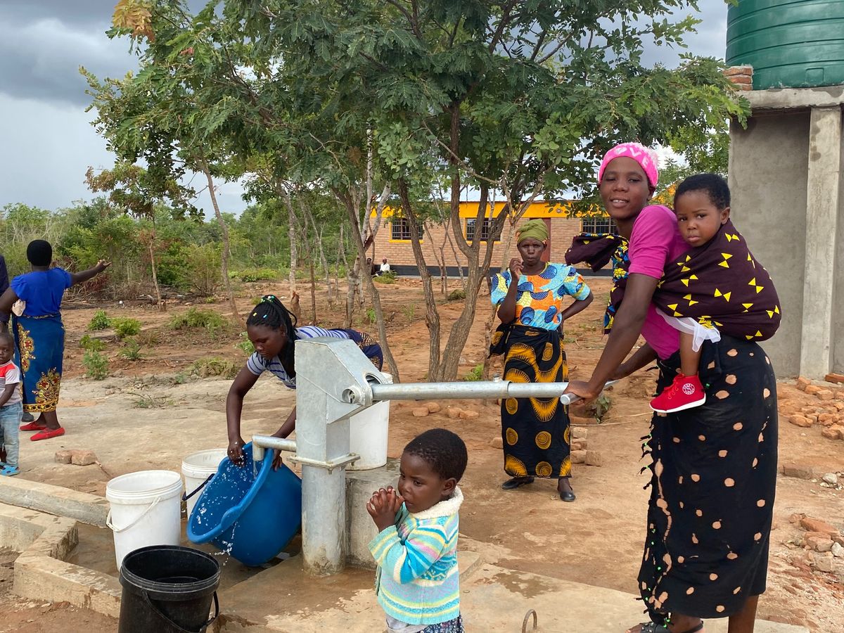 In this remote location of Malawi, last year we built a school block and two teachers' houses and also provided clean drinking water for the school and surrounding communities. A solar pump provides clean running water for the school, and a hand pump provides clean drinking water for communities in the surrounding areas.