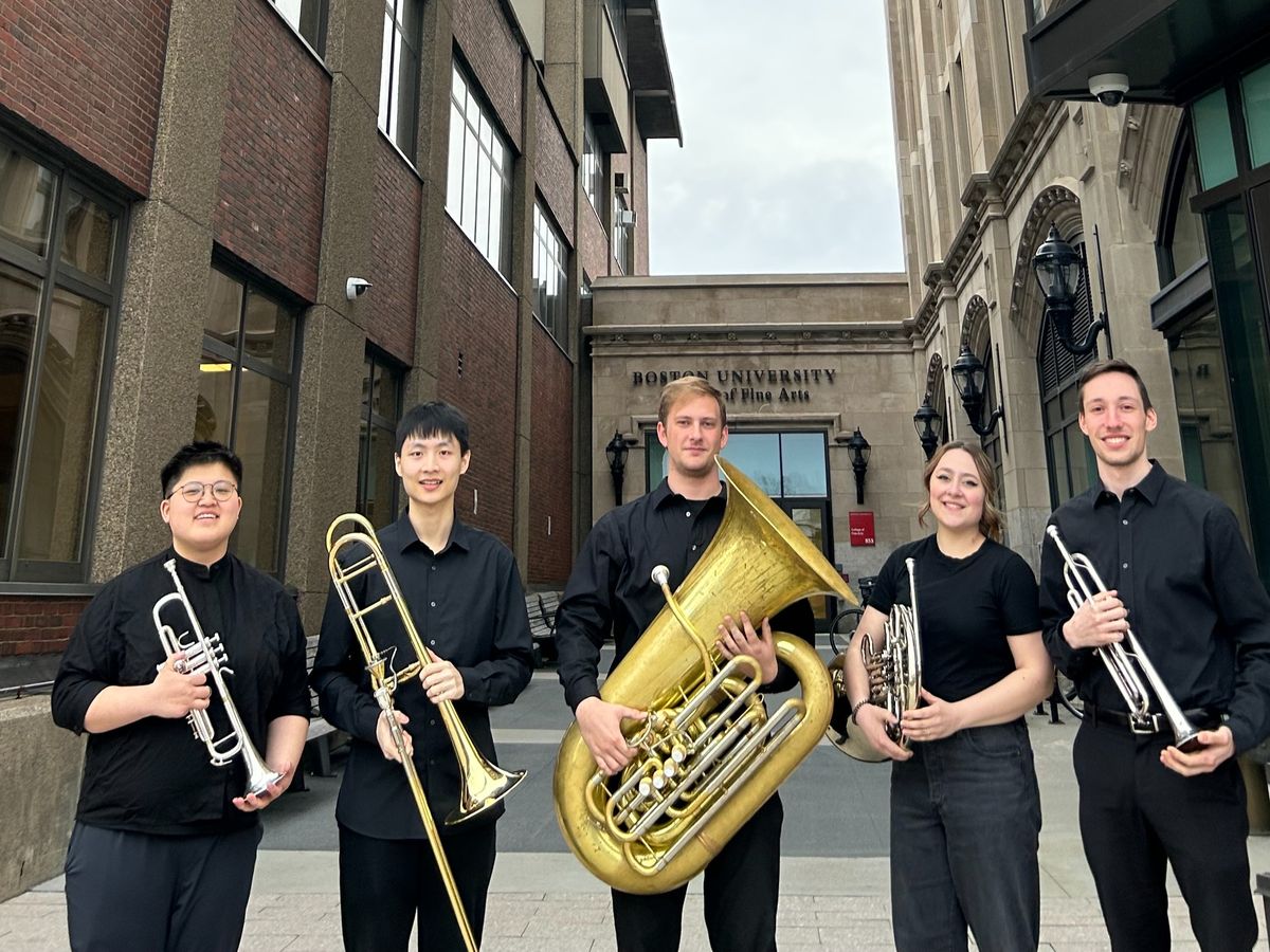 Hi, we are Boston University's Commonwealth Avenue Five Brass Quintet, and we have recently submitted a video submission to the preliminary round of the Phillip Jones International Brass Ensemble Competition and have been ACCEPTED to the Finals! This means that we have been invited to play at the competition in Birmingham, UK this summer.
