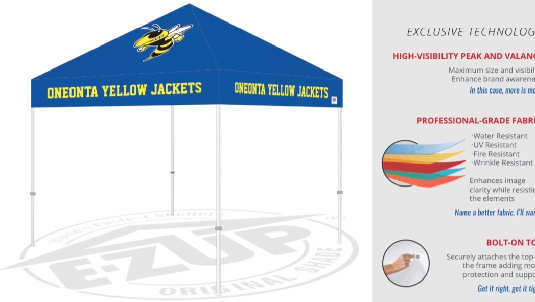 I realize the pandemic has been very difficult economically for many in our area but we feel the purchase of this tent will go far in not only helping us find our children at races and providing them shelter but also to help provide them a sense of ownership in the Oneonta Yellowjacket name when they are competing. Please share this with friends and family; no donation is too small. Go Yellowjackets!