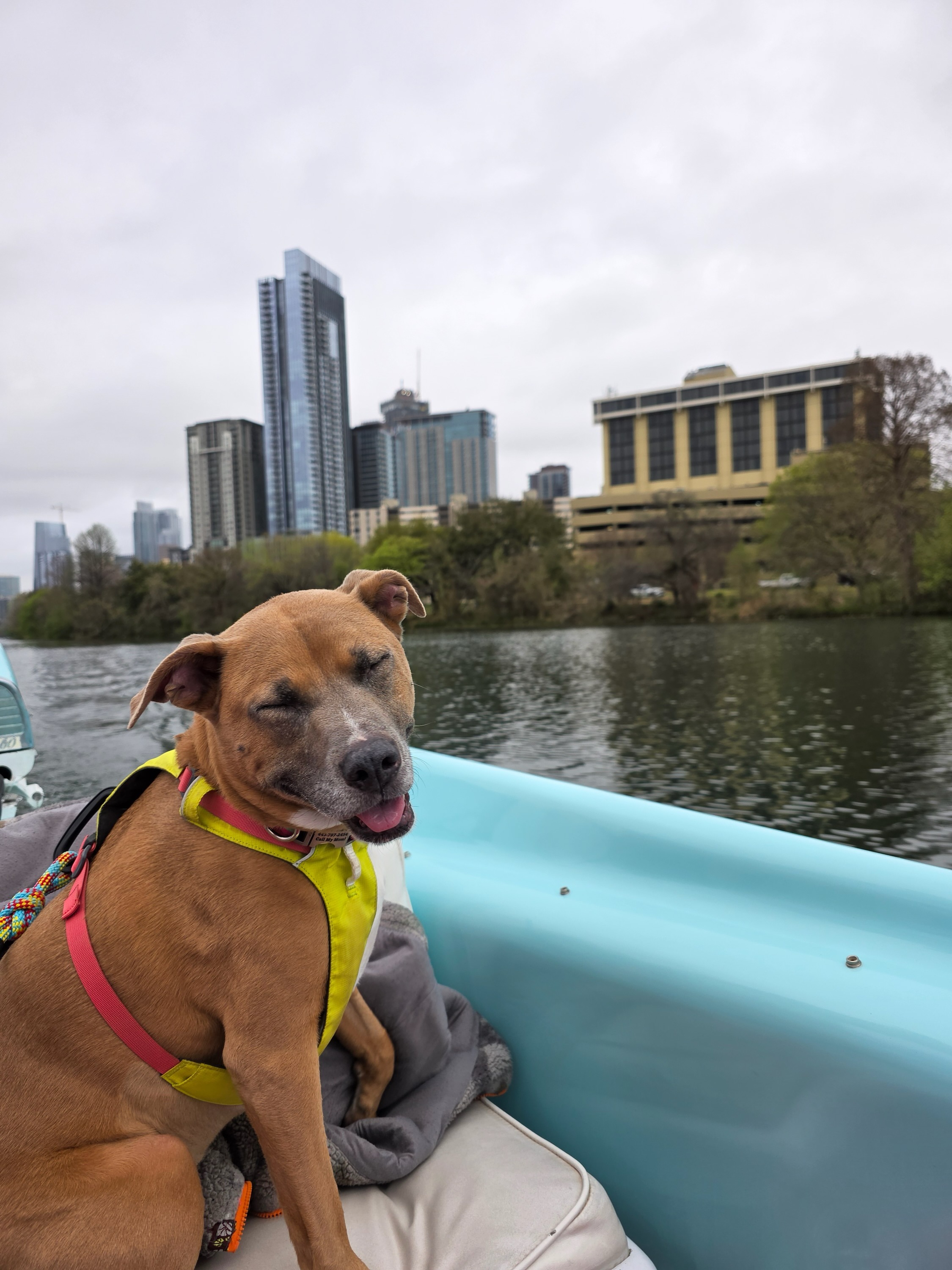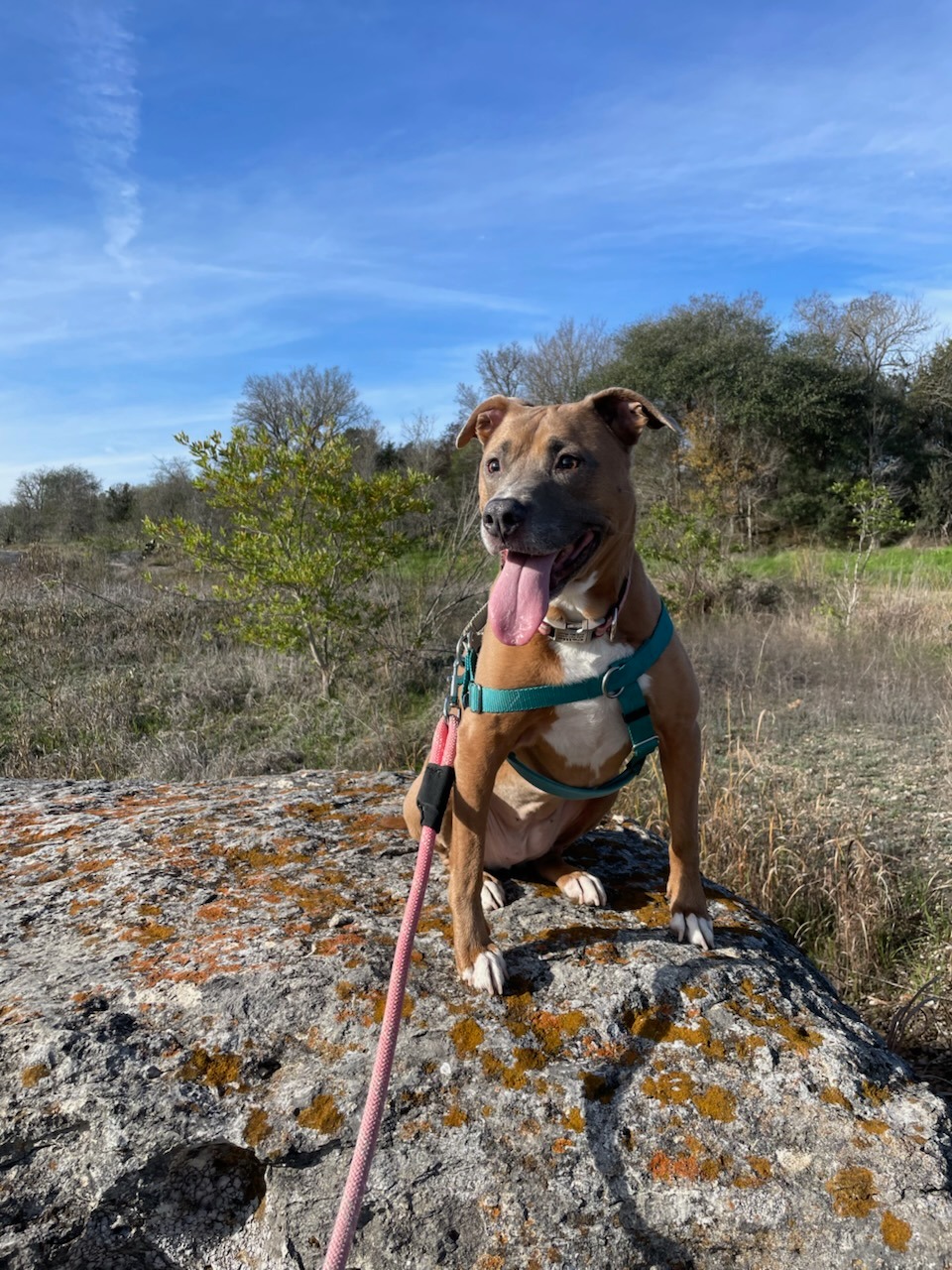 Callie has been my very best friend for the past 10 years. I rescued her in Baton Rouge in 2015 as a small pup, and since then we've traveled the country together and have not been apart for more than a handful of days--she's my baby. She is such a goofy, sassy, sweet girl who LOVES people. She remembers everyone she spends time with, and will often get so excited to the point of peeing when she reunites with old friends. You can always count on Cal to bring the love. If we're not hiking near the falls at our local state park, Callie can be found splashing in her baby pool in our yard, begging for apples and frozen green beans (her favorite), and snuggling with my other dog, Moo. Callie is a true fighter--she has overcome cancer and other health issues, coming out the other side happy, healthy, and with a visible zest for life.