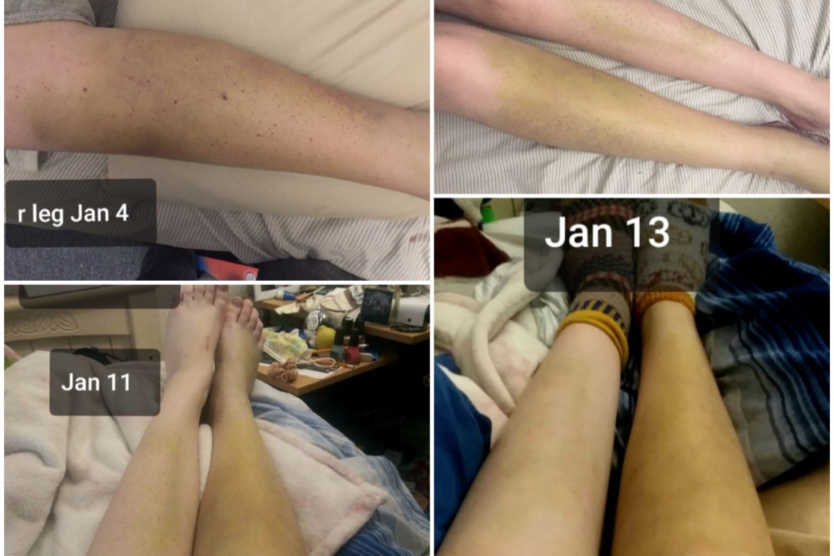 As some of you know, Cami started having pain and bruising on her right leg on Christmas Eve. In the weeks since, the bruising has covered her lower right leg and foot and started appearing on the left. She is in a lot of pain, very weak and feels faint whenever she is up. Cami has been essentially bedridden for three weeks.