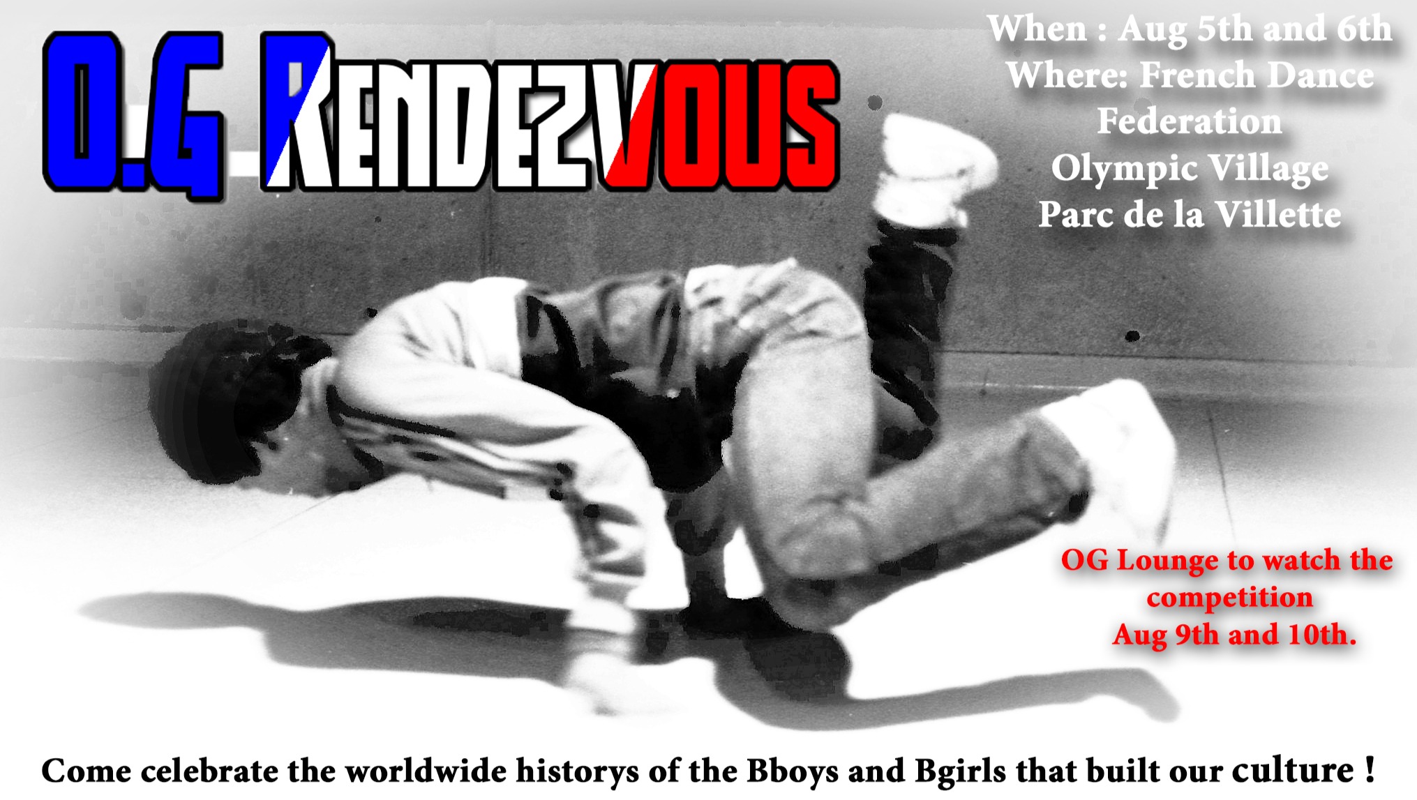 We have built an event where the OG's of our breaking culture can come together and celebrate and share our histories at a location right in the Olympic Village.