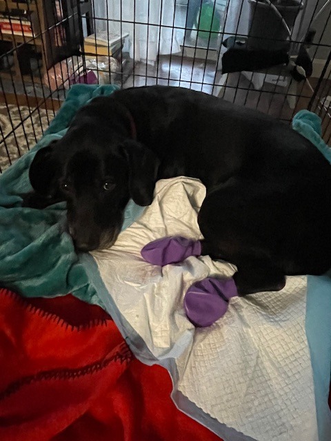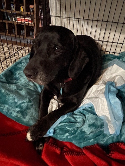 Right now, he’s comfortable (thanks in no small part to the pain meds he’s on) and he’s been in better spirits than me this whole time. He’s acting like his happy self, and he wants to play, even though he can’t yet. He also longs for his favorite chair and has had to settle for crate rest and soft blankets.