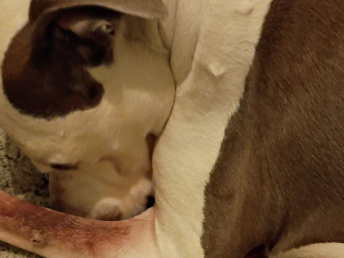Capone has been my loyal service dog and companion, helping me navigate life’s challenges every day. Recently, Capone was diagnosed with cancer. He’s no longer eating or drinking, and he can’t walk anymore. Because of his illness, he’s unable to continue his job as my service dog, and it breaks my heart to see him suffer. We are currently homeless, sleeping in a park, and I don’t have the funds to provide the care and euthanasia he needs. I stay awake at night to keep him safe, as the smell of his blood is attracting coyotes.