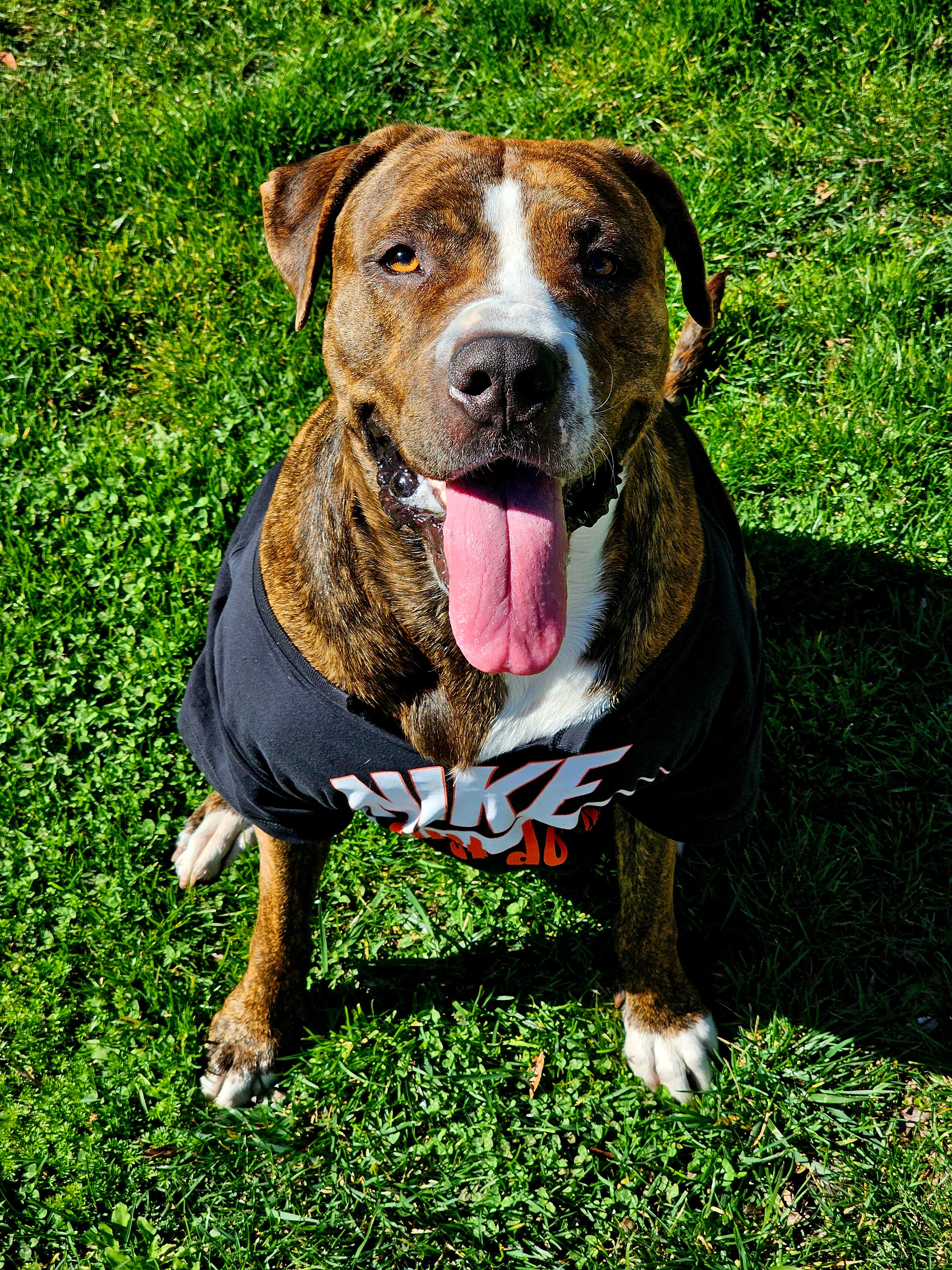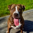 Hi, my name is Mark, and this is the love of my life, Cara-Melly D! I call her that because she is the sweetest, most loving little girl I've ever met. She's always happy and instantly loved by all whom she meets. She loves to play Frisbee, the beach, absolutely loves to swim and play ball. People stop me all the time, taking pictures with her. At a bus stop one time, she sat amidst a group of children who were on a school trip, in heaven, getting belly rubs and love until the bus showed. She has been my rock and, in a way, my salvation. She's made it virtually impossible for me to have a bad day. Due to my own medical issues, she has become more than a companion; even as a service animal, she goes above and beyond. I get regular EKGs, and she lays patiently next to the table with my hand on her.