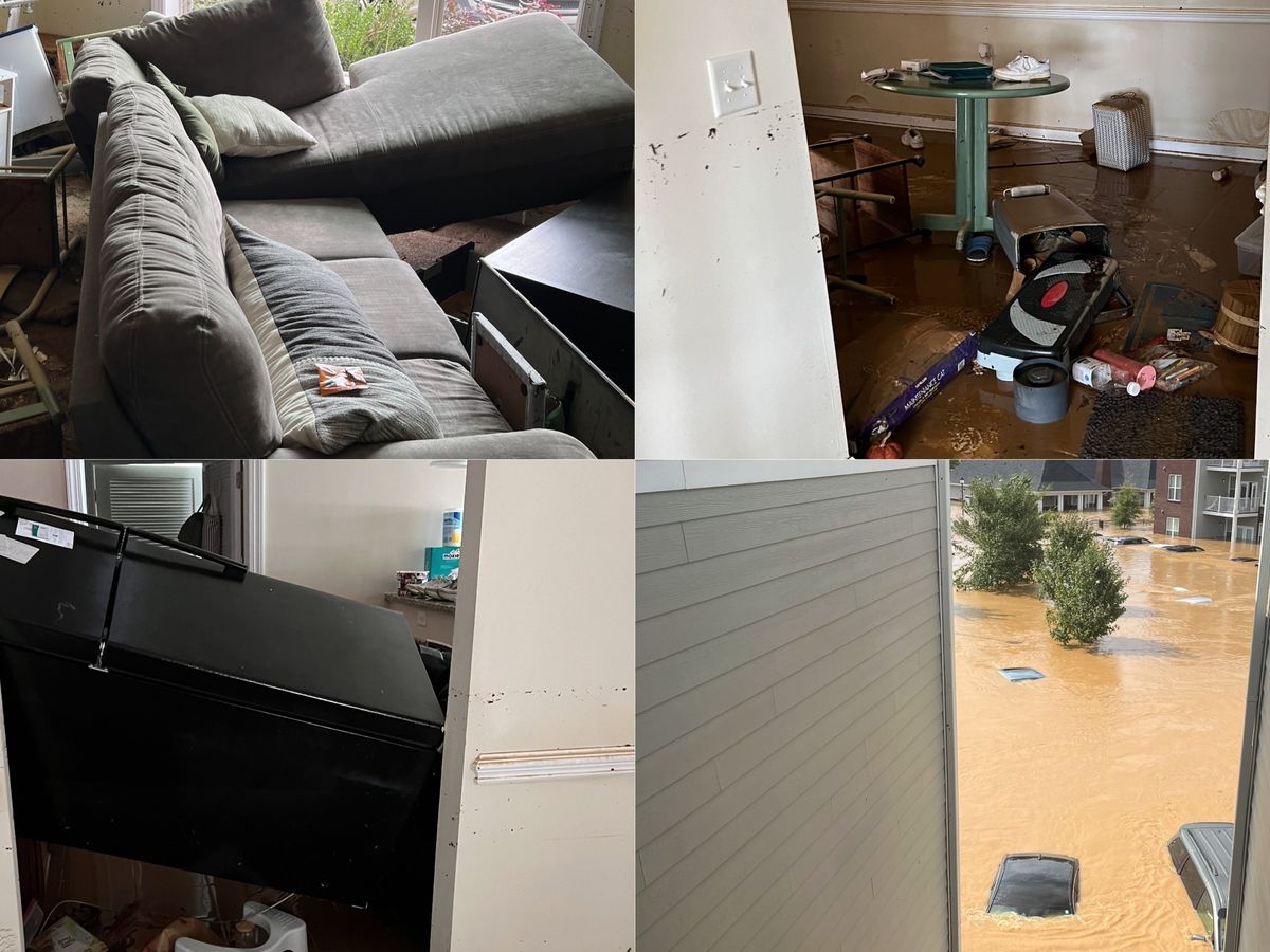 During Hurricane Helene last week, Carrie and Kaley were in their first-floor apartment in Fletcher, NC as it flooded. They were able to get to safety with their cats, but they lost most of their belongings and all of their furniture, as well as both of their cars, which were completely underwater.