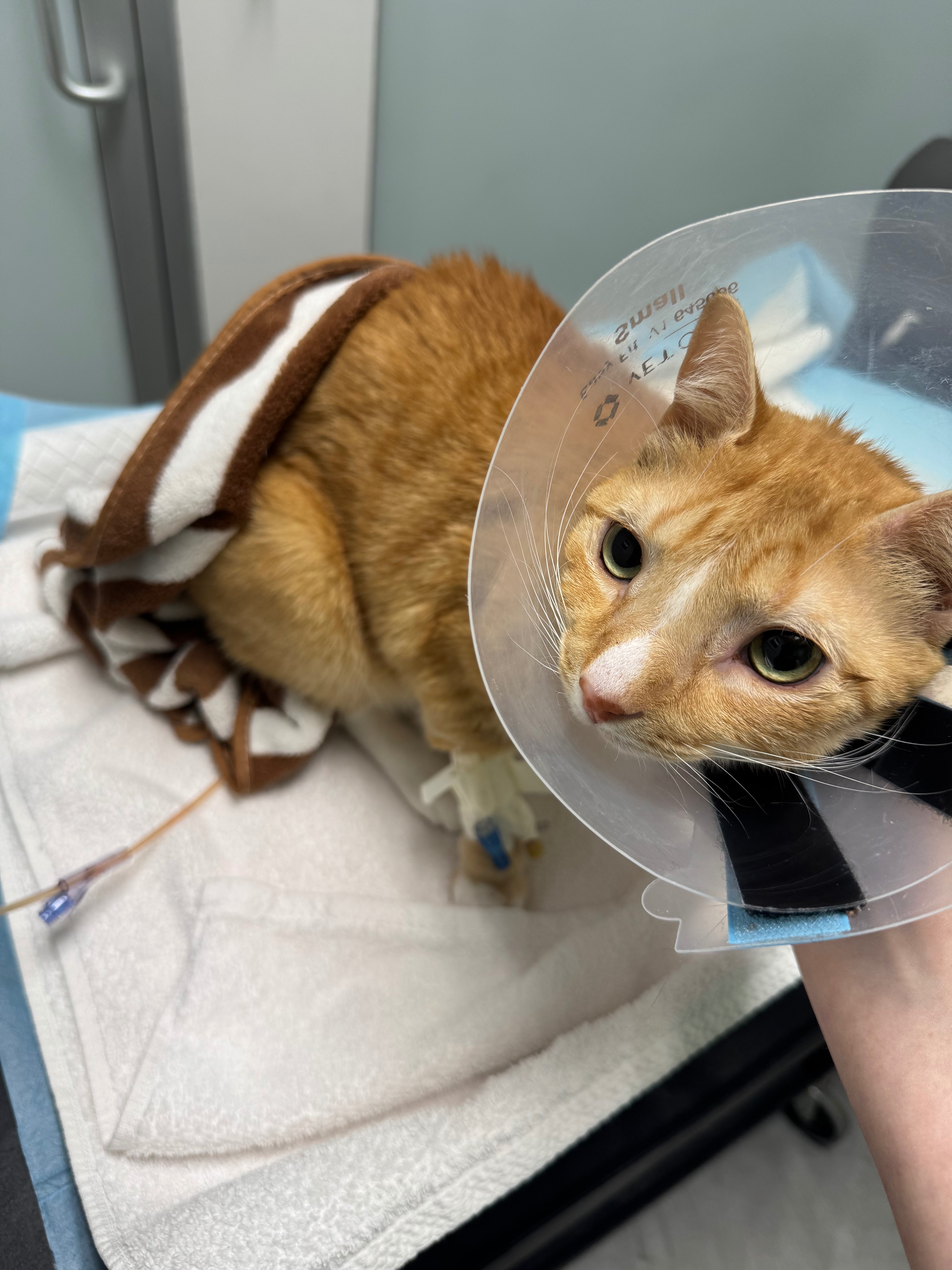 Cash (aka Cashew, Mr. Mengz, Señor Cashman) was my first baby. He broke into my apartment in the West Indies and chose me. He has micrognathia (congenitally small lower jaw) and couldn’t hunt, so I fed him nightly until we were evacuated in 2020. In the US, he got surgery to remove his lower incisors which were ulcerating his hard palate and was doing well. That is, until recently. Over the past year, he began developing urinary obstructions. It was determined he had crystals that were blocking his urethra, so we changed his diet, increased his water intake, and started him on medication. Despite this, episodes became more frequent and severe. On 5/27/25 he was brought into the ER with another obstruction. This time, the catheter was difficult to progress, and he developed a urethra tear. He was kept in patient with the catheter in place. We were left with no choice - he needed a perineal urethrostomy. In layman’s terms, a surgery to shorten and widen his urethra to allow the crystals to pass without causing obstruction.