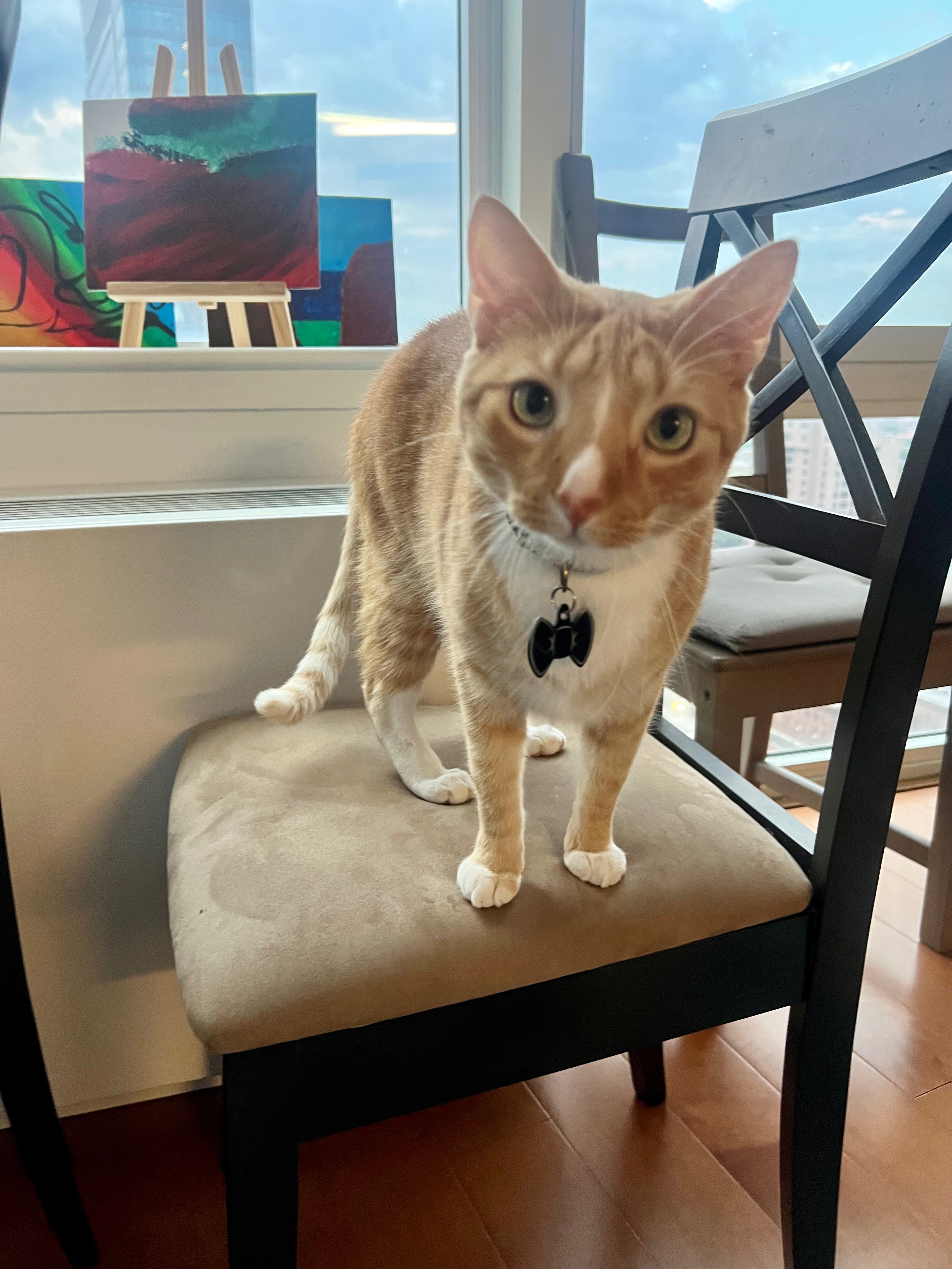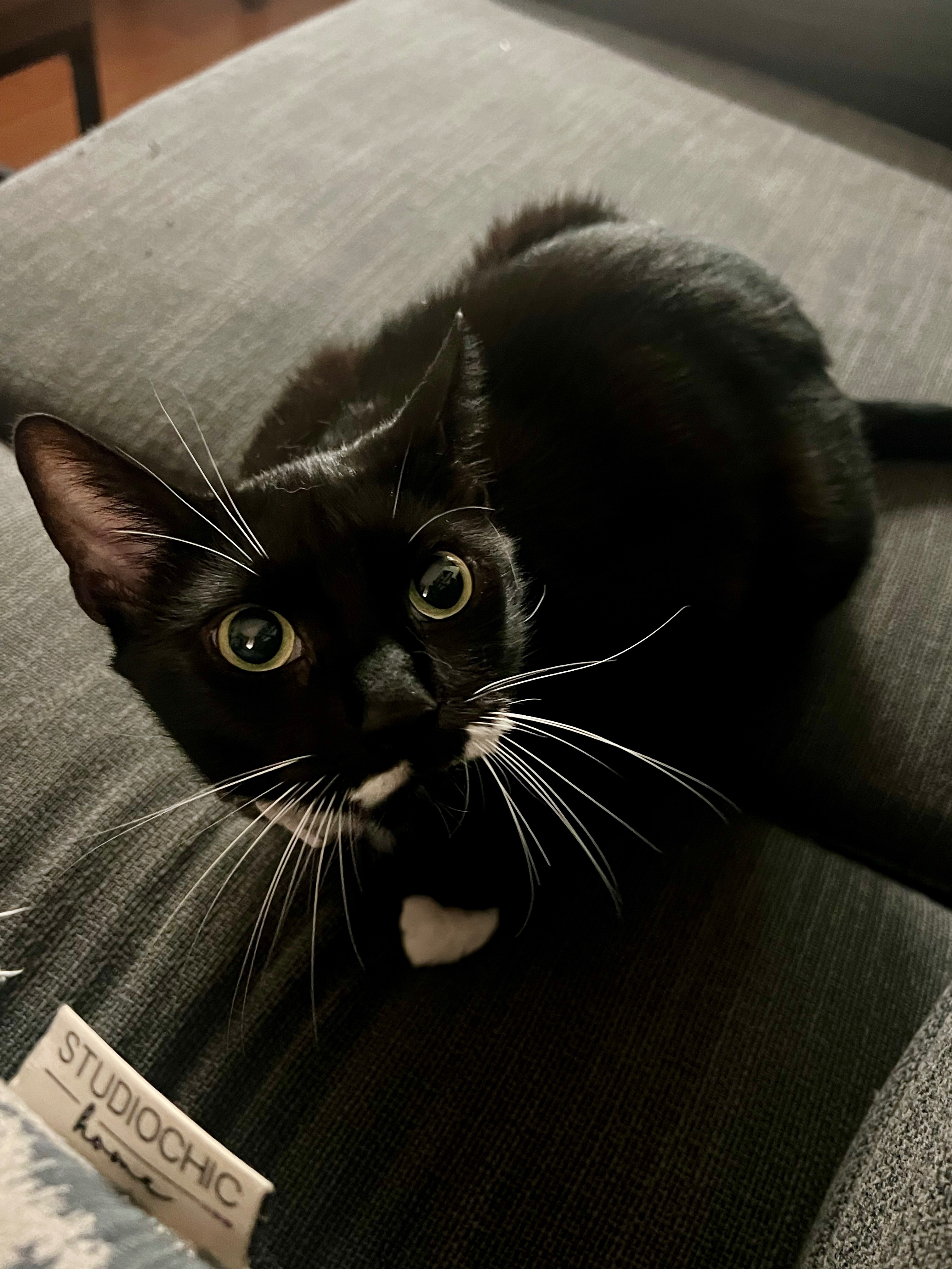 Luna (aka Looney Tooney, Loondies, Night Terror Demon) came into our lives with her sister, Mook, as a temporary foster. She was approximately 2 years old and un-neutered. Her owner became homeless unexpectedly, and the cats were living out of a car in the winter, so we offered to house them while the owner got on their feet. When they arrived, we were told not to worry about Luna's teeth - she had been kicked in the face by the owner’s former partner. The owner laughed, saying she was being so annoying, but he probably shouldn’t have kicked her with steel-toe boots. Needless to say, we were horrified, and after some time and discussion, the cats were surrendered to us. We quickly got Luna neutered. In the process, some of her damaged teeth were able to be extracted. However, she still needs her lower left incisor removed in a separate procedure. It is bent outwards, browned, and broken. Thankfully, she has not shown signs of pain or infection, but it’s only a matter of time.
