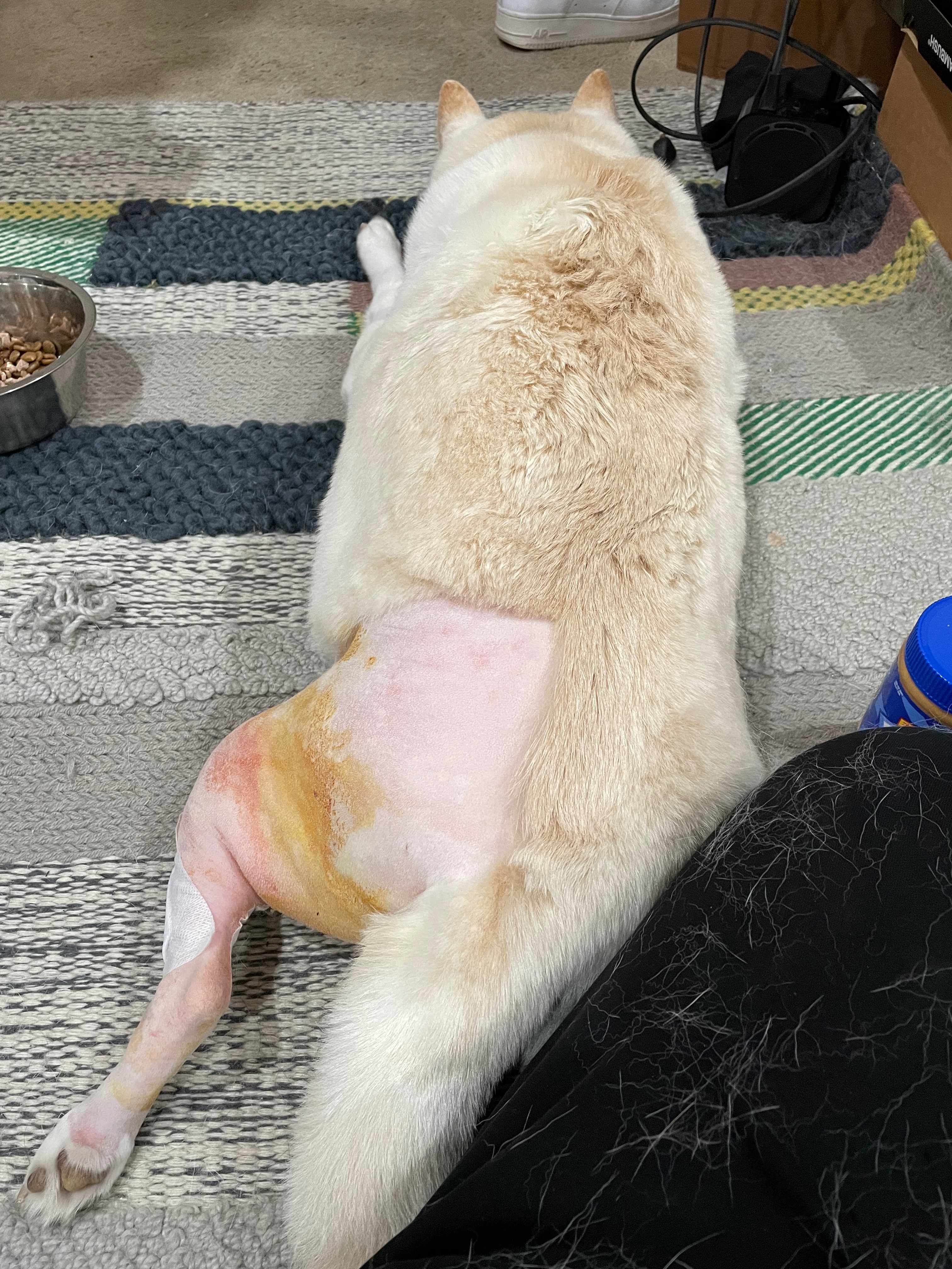 Mi querido niño Casper tuvo un accidente que le dificultó caminar por sí solo. Se rompió el menisco y el ligamento cruzado anterior, y lamentablemente, no es la primera vez. Ya le han realizado esta cirugía en su otra pata trasera. Como la lesión ahora se considera una condición preexistente, ninguna compañía de seguros la cubrirá, por lo que tenemos que lidiar con ella por nuestra cuenta.