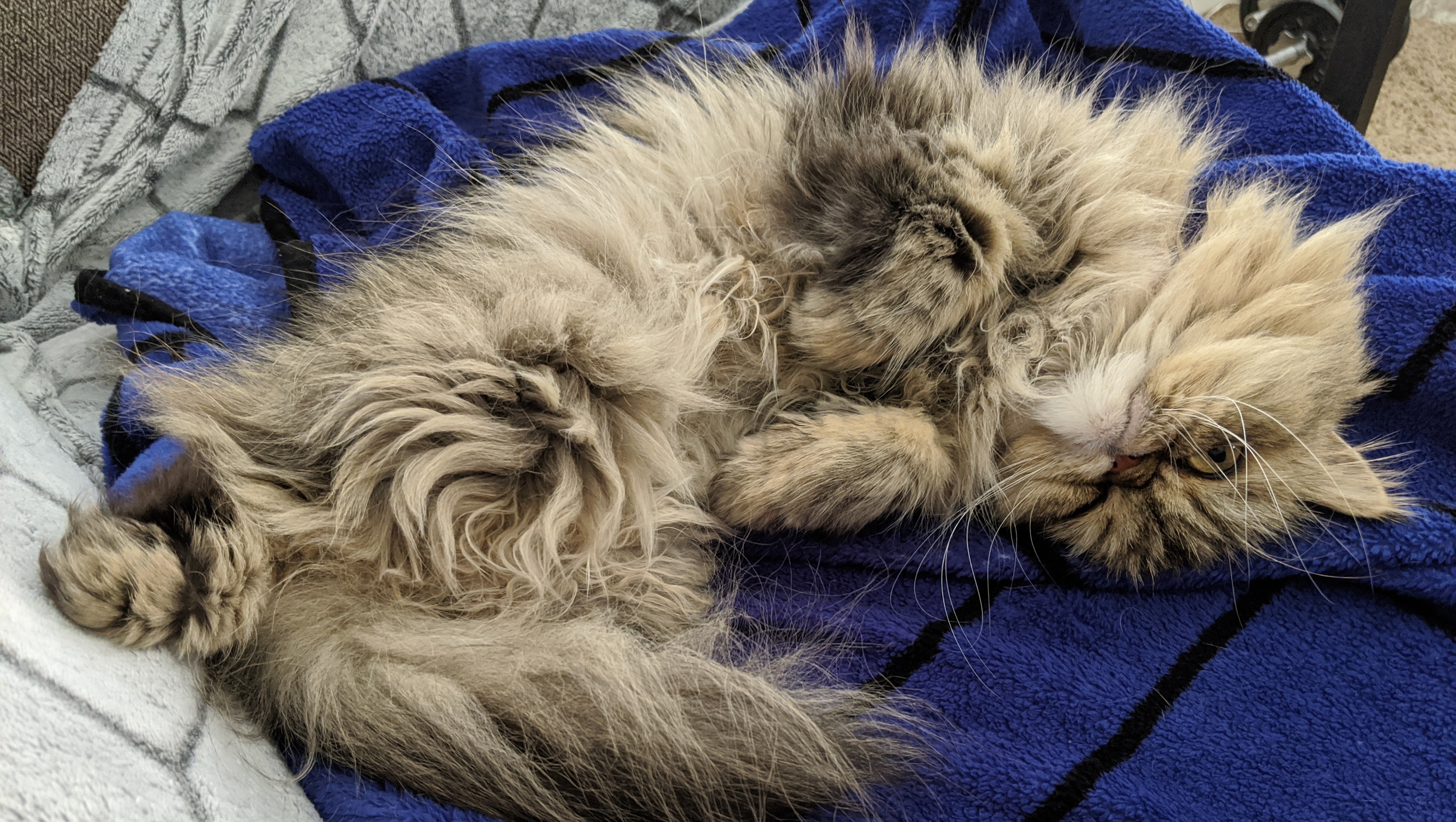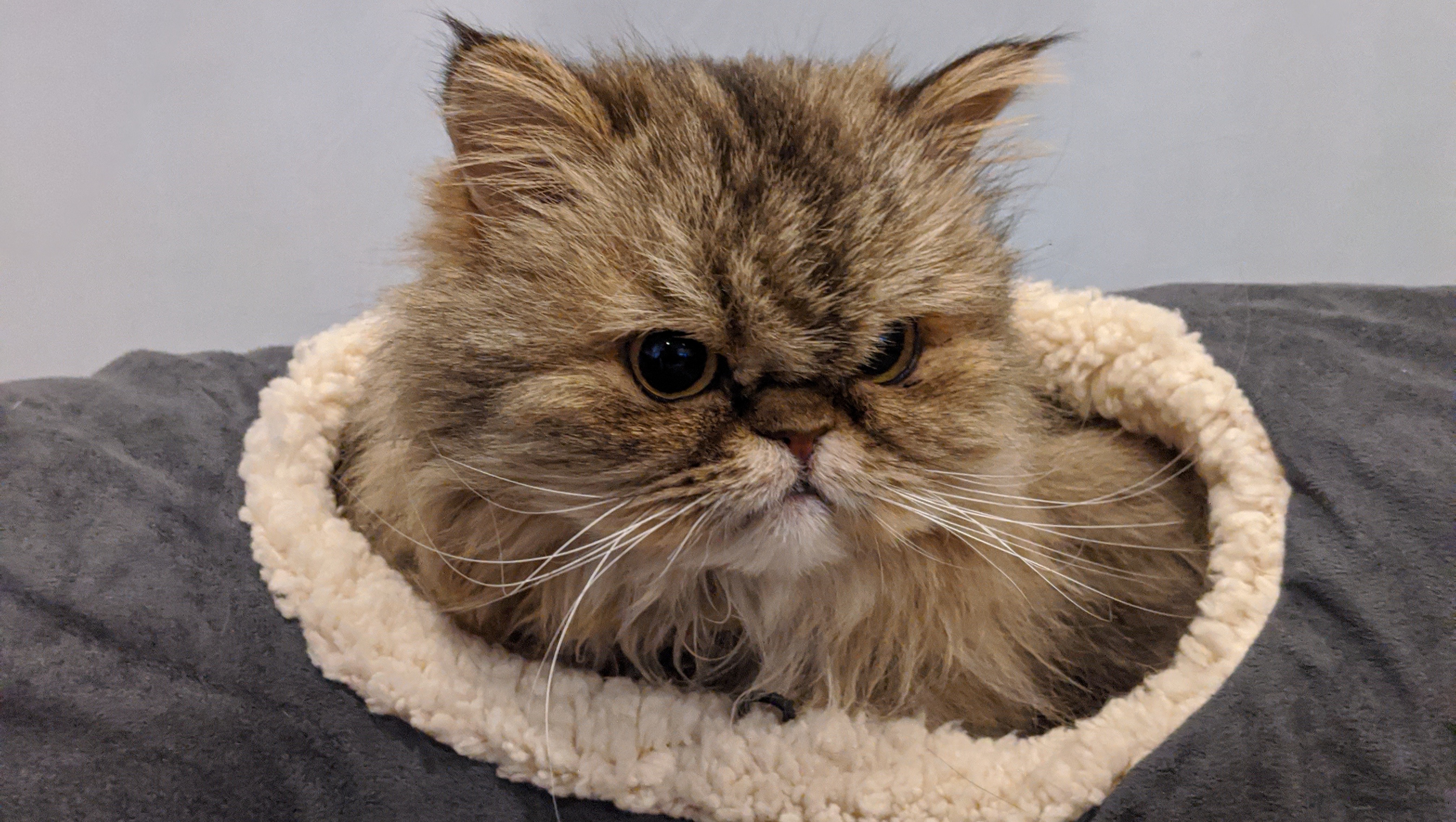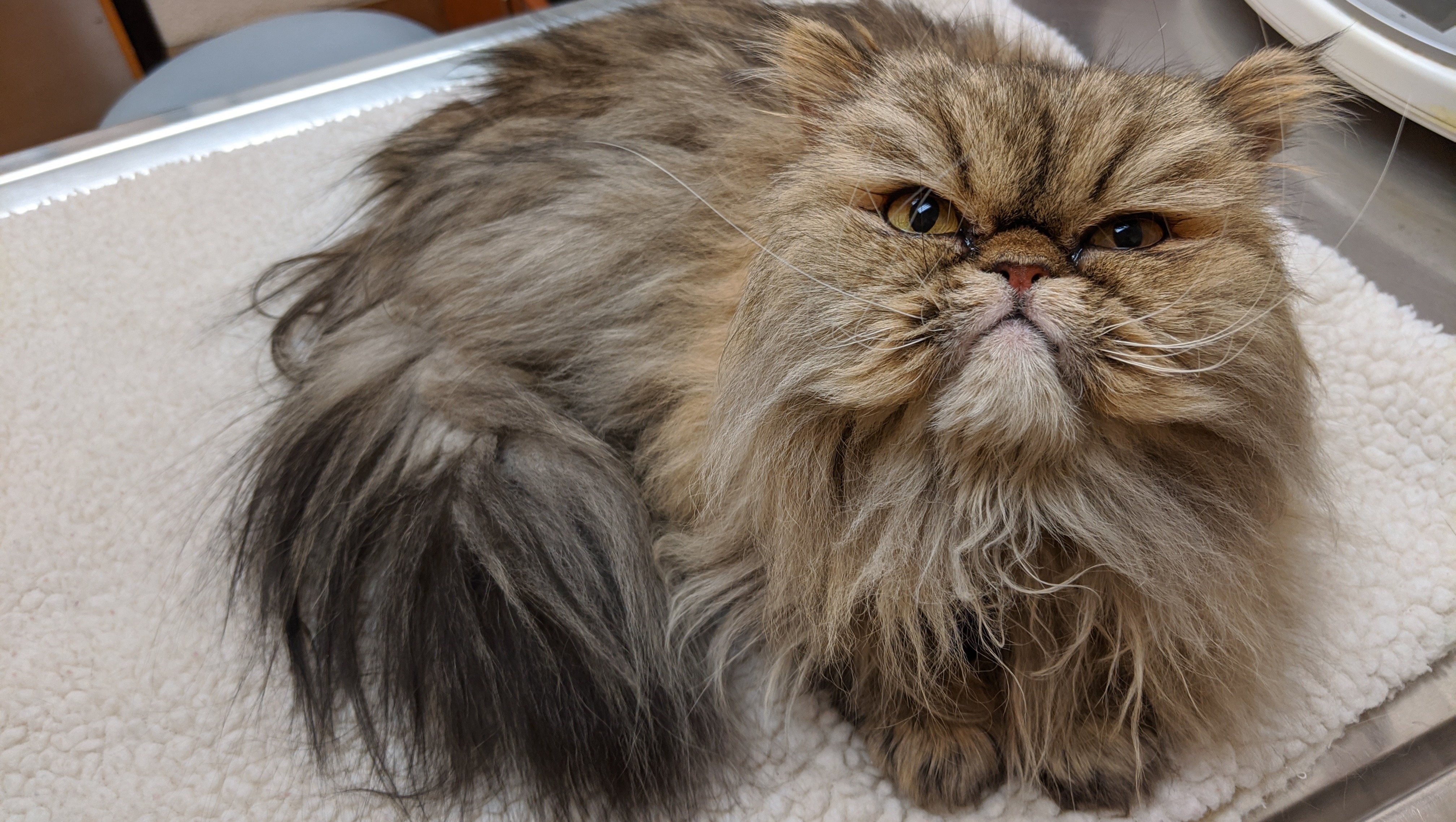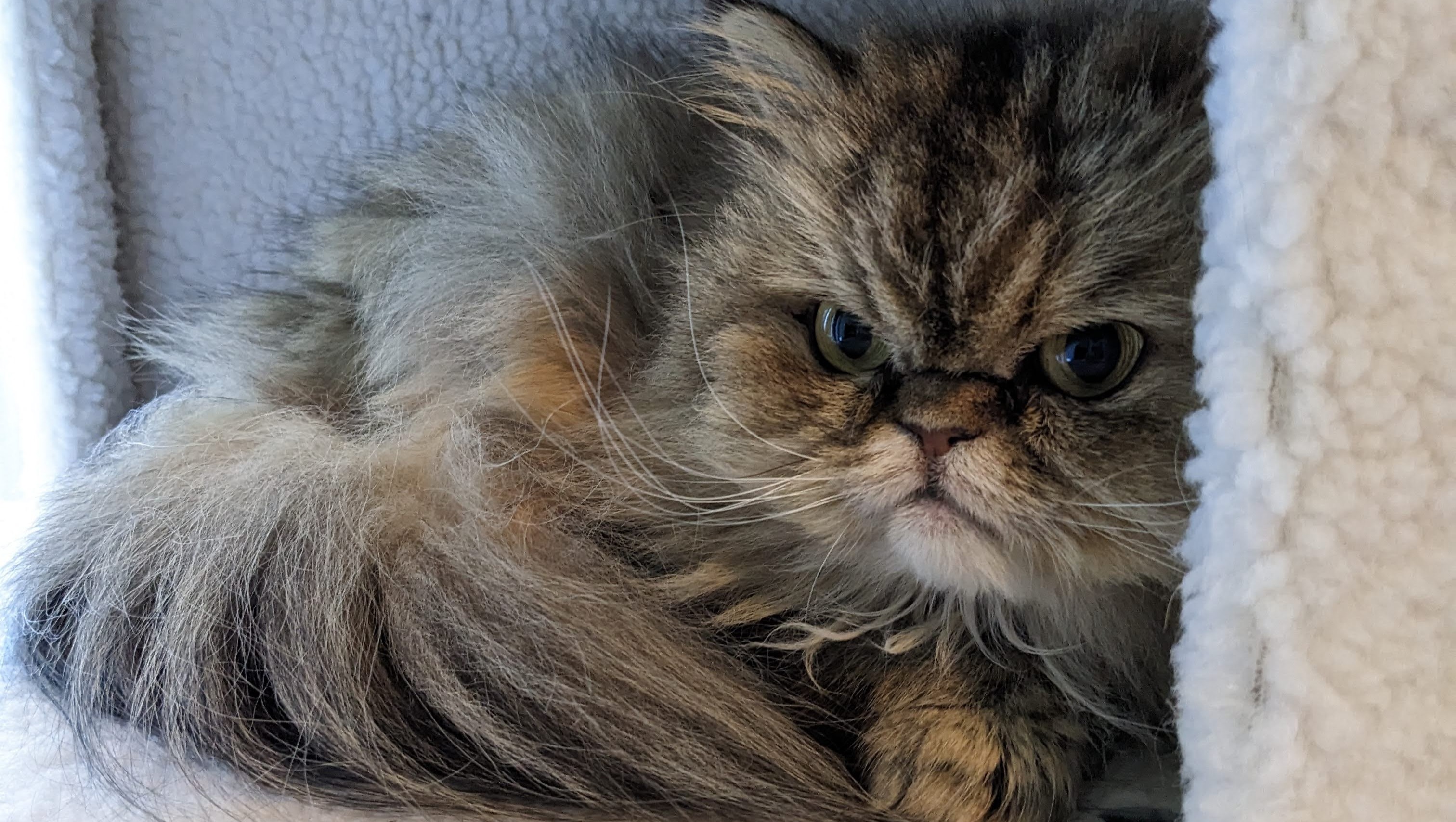 We adopted Cass from a shelter in 2018. Her previous family surrendered her for unspecified reasons. She was malnourished and dirty, weighing only 3.3 pounds and her fur matted in thick clumps. It was love at first sight. She is very cuddly, with the playful spirit of a kitten. Life hasn't been the kindest to her, but she loves everyone (human or animal) fiercely.