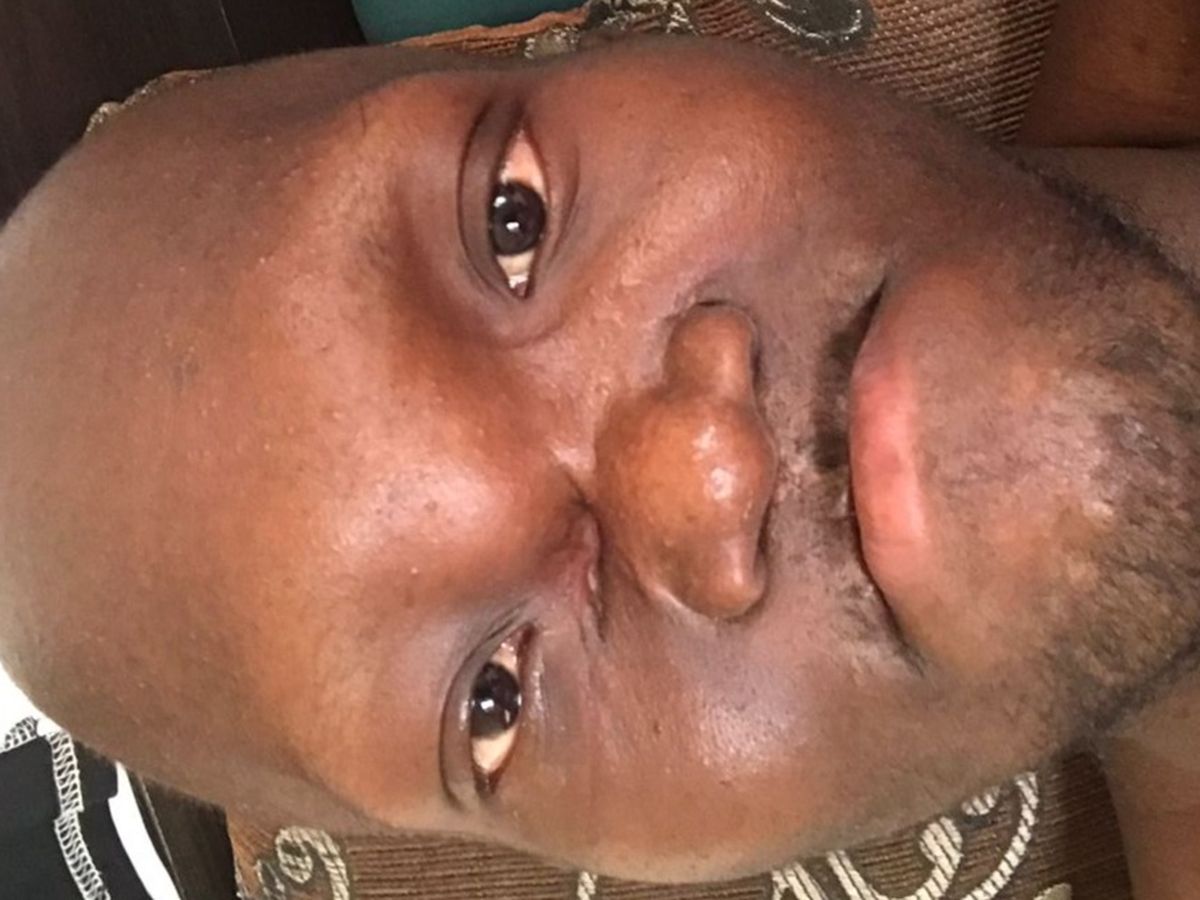 After two surgeries and radiotherapy, the tumor still came back at the glabella and his neck, he just finished chemotherapy and he has been referred to India for urgent surgery to remove the remaining tumors and reconstruct his jaw.