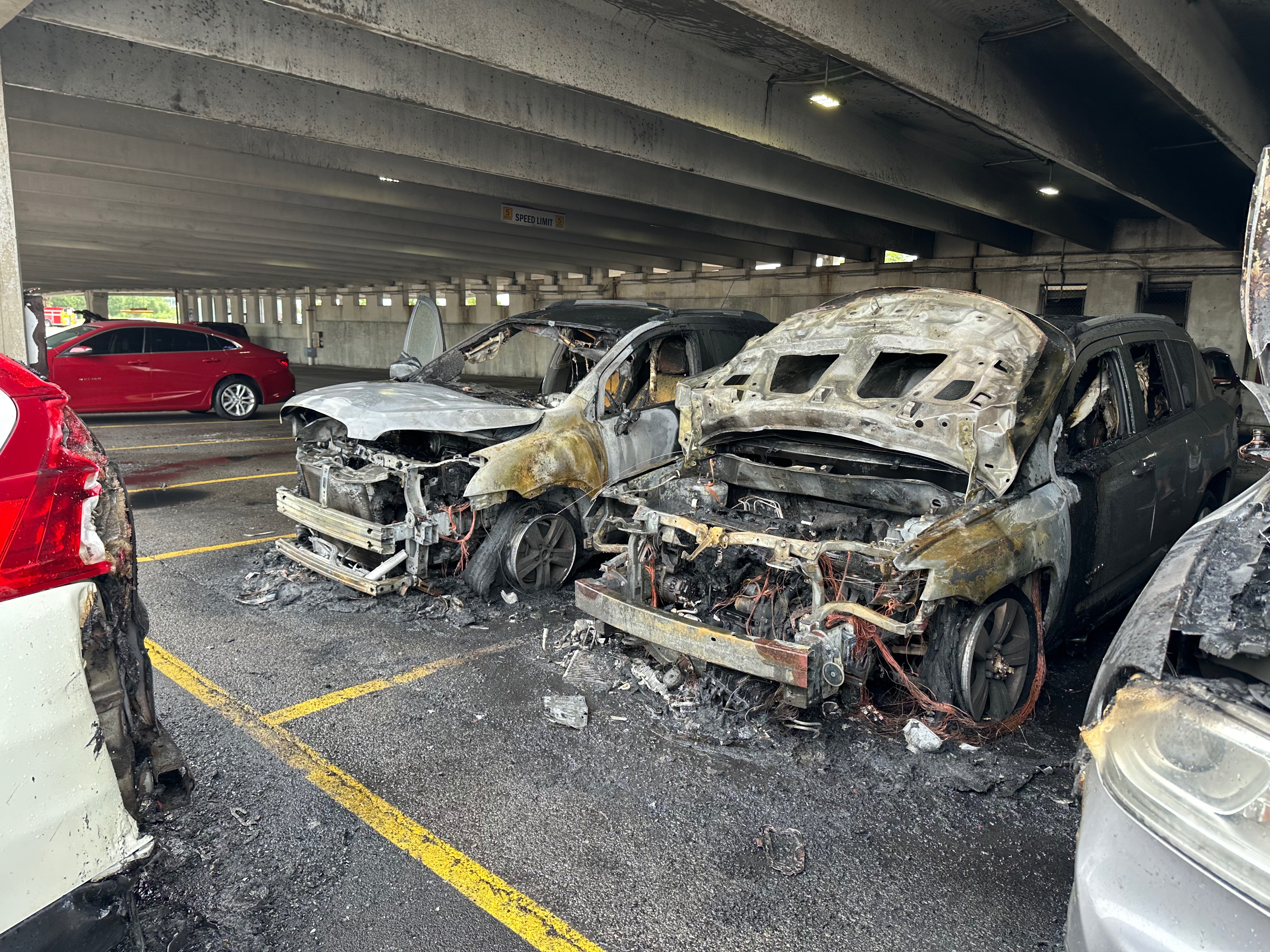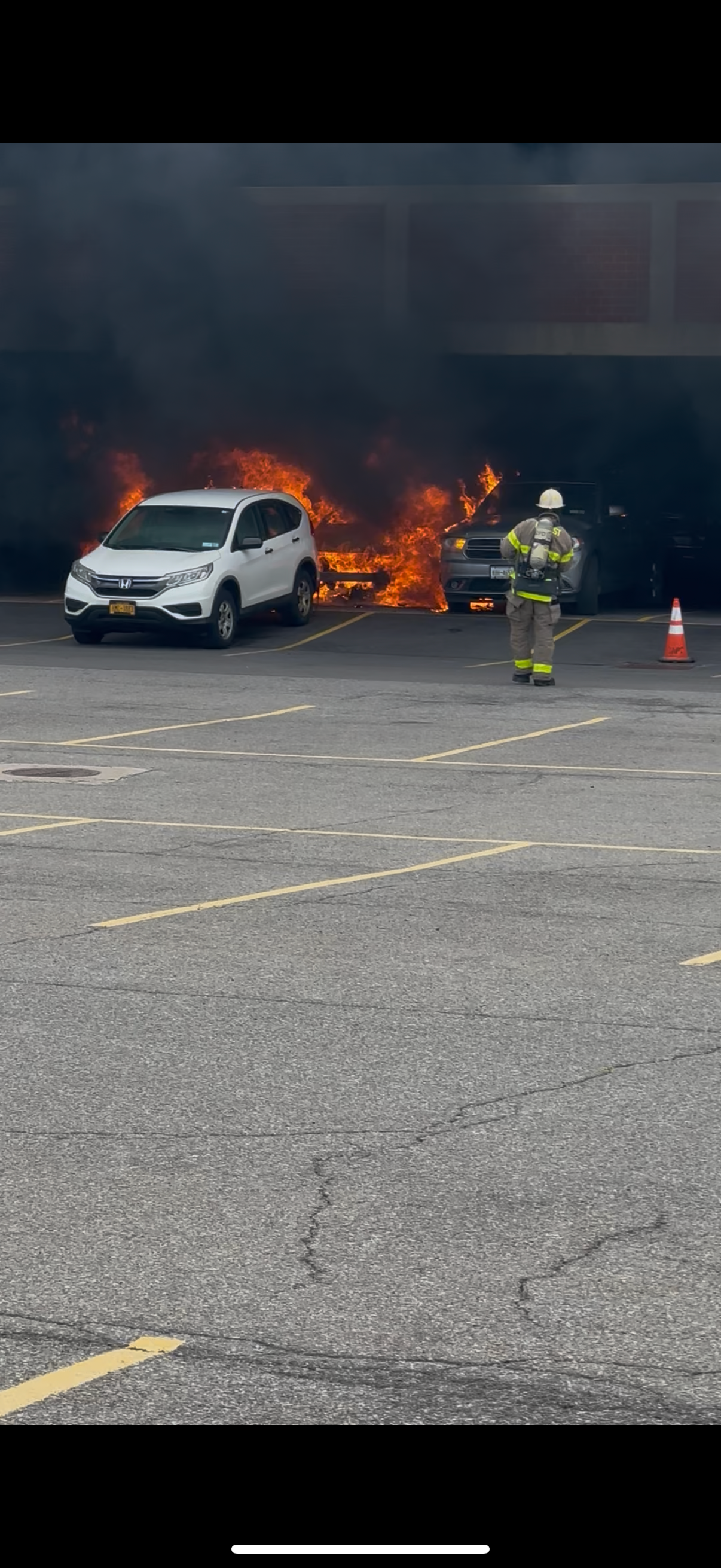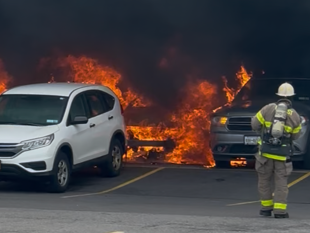 This week while looking for a parking spot at the Galleria Mall she saw a little smoke and pulled half way into the spot next to her to check it out. While she was pulling in more smoke came out and quickly caught fire so she jumped out. When she jumped out the car it exploded immediately. The car exploded multiple times blowing all of the windows out and setting three other cars around on fire as well.