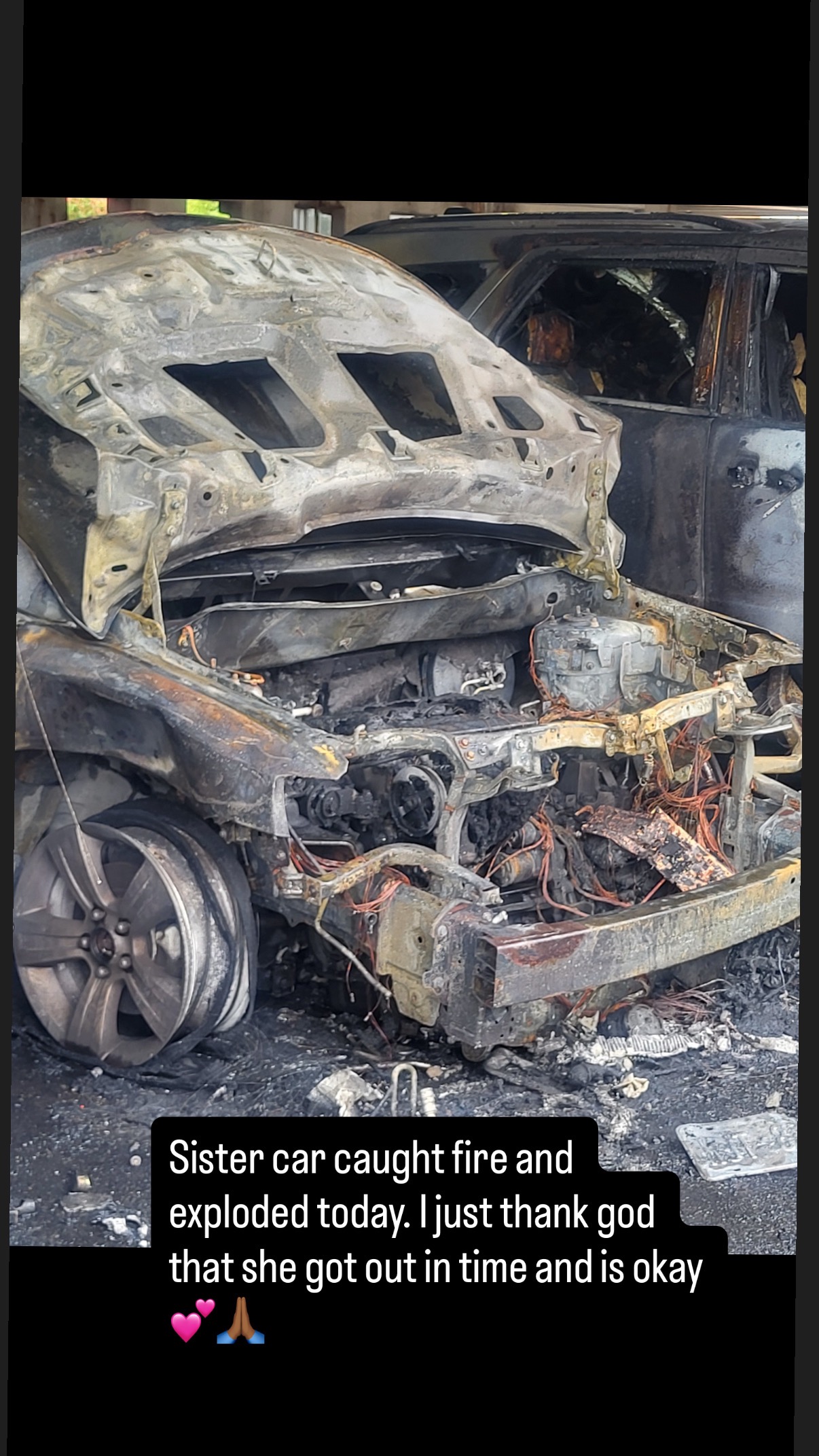 Her car had no prior issues/lights or anything indicating that the car was about to explode.