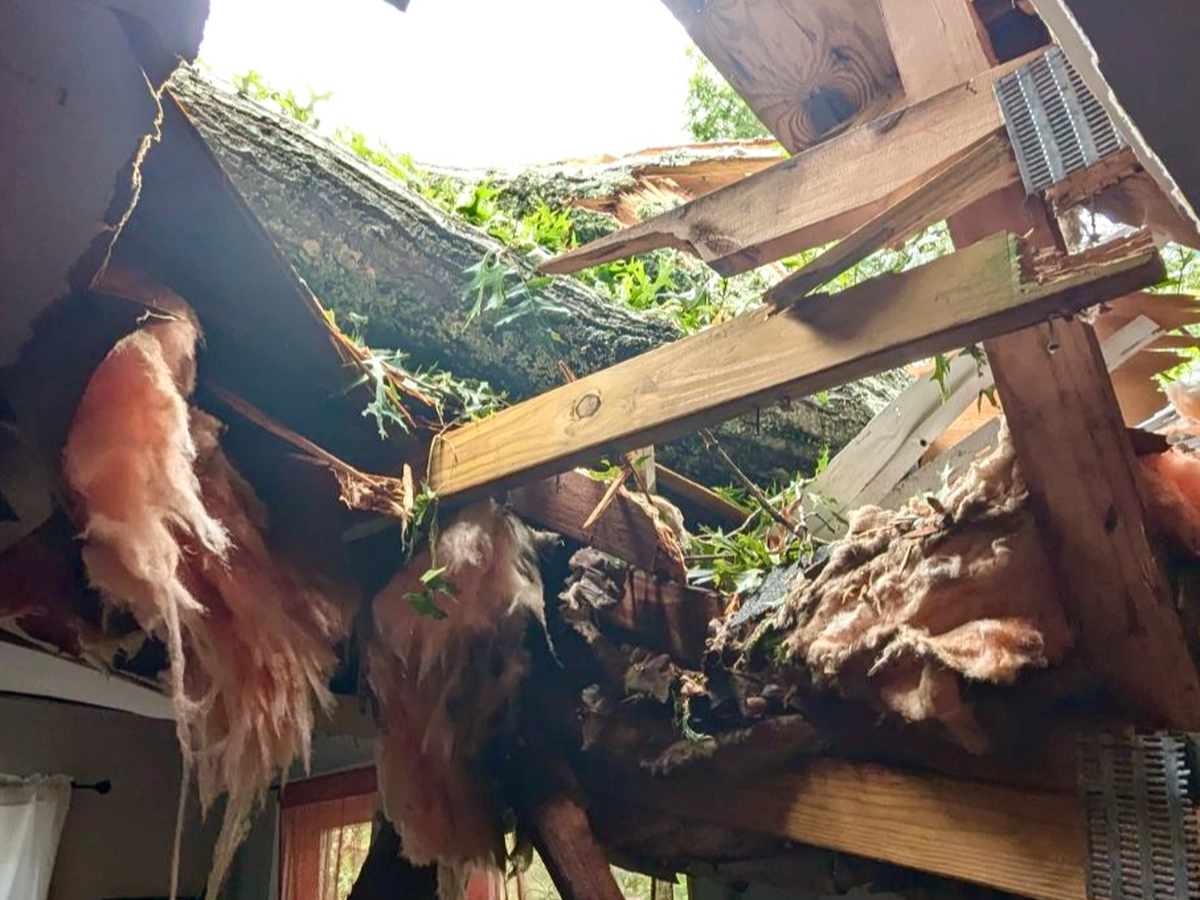 Charlotte's home in Swannanoa was severely damaged by hurricane Helene. A large oak tree fell onto her house, tore a gaping hole in the roof, and destroyed her car. She nearly lost her life as she and her dog Lucky ran from their home.
