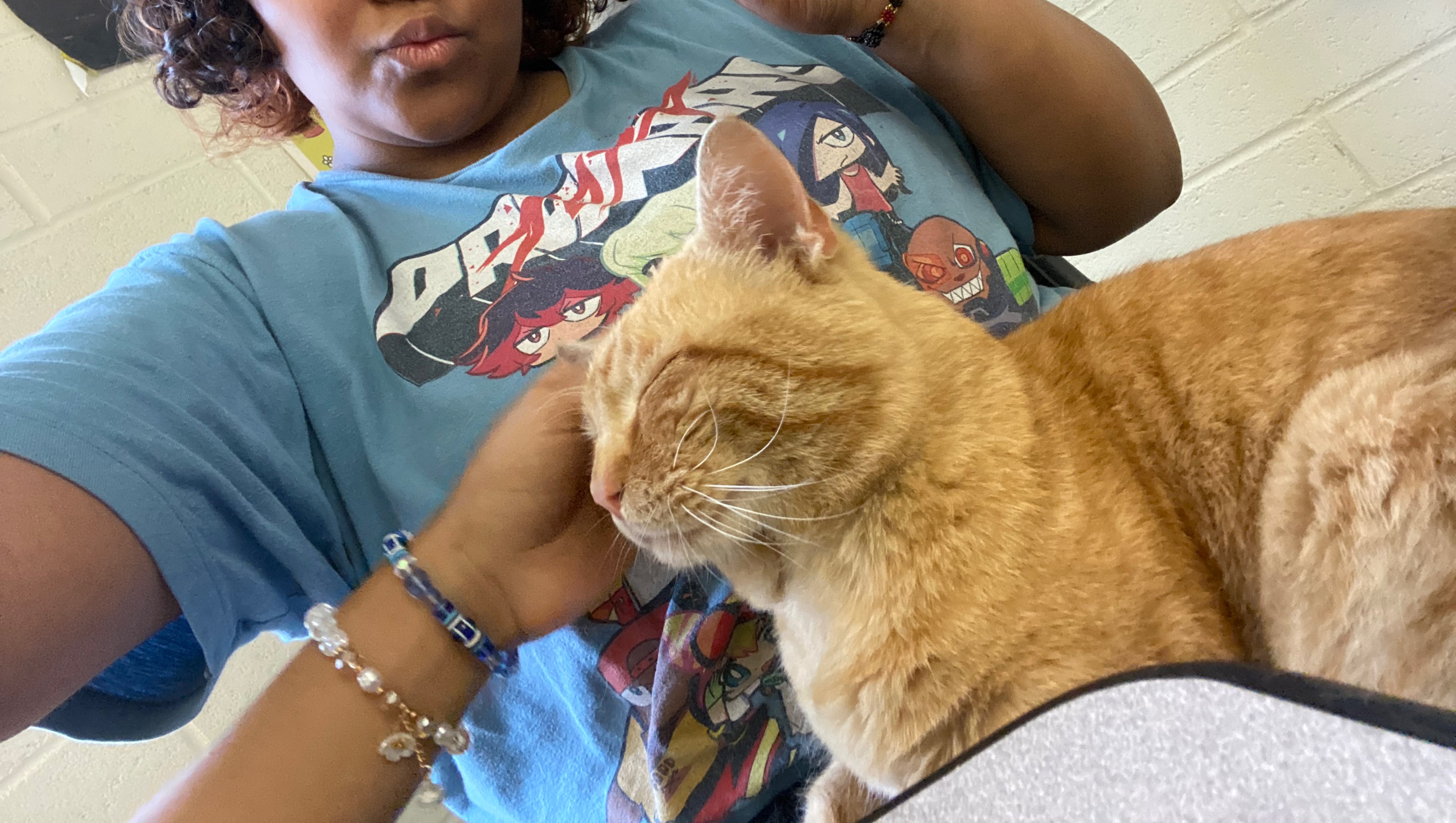 I don't know what I'd do without him. Since he was a kitten, he's been a lover. He was so upset when I would leave for school. He would follow me until the crosswalk and meow to me every morning before I left. On the last few days of my sophomore year, he was so desperate to stay with me that he followed me to school. I didn't notice until I was crossing the street. So, I asked my favorite teacher if he could stay, and when he said yes, I was so happy, and Cheddar was allowed to be with me at school that day.
