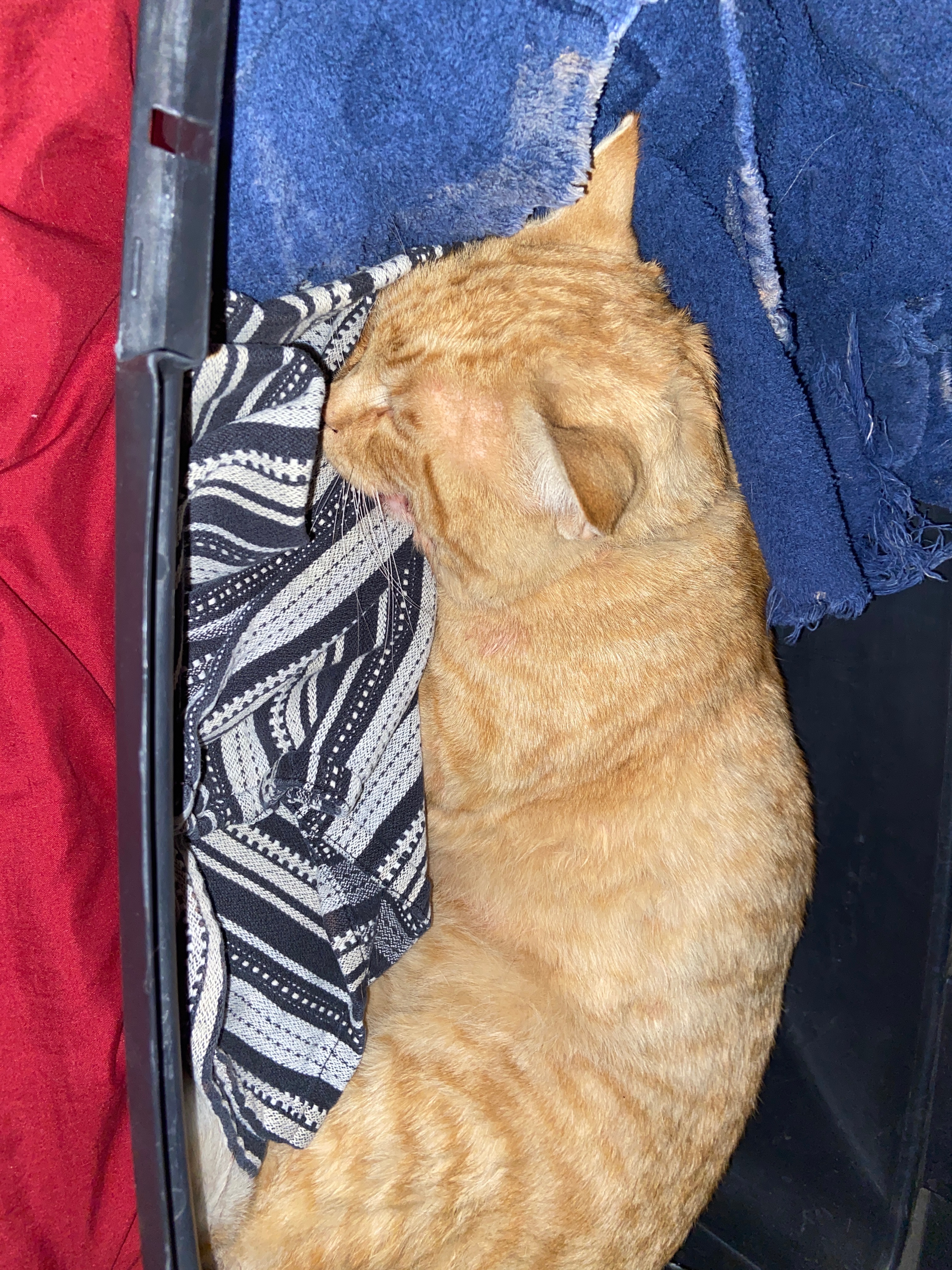 A little story about Cheddar: he's a romantic. He's flirty with neighborhood cats and loves attention from my other cat, Mystique. She spent this morning trying to groom him and clean his wounds as he wailed like a newborn.