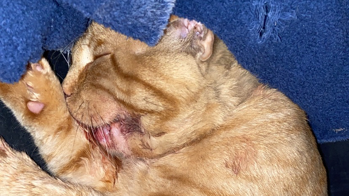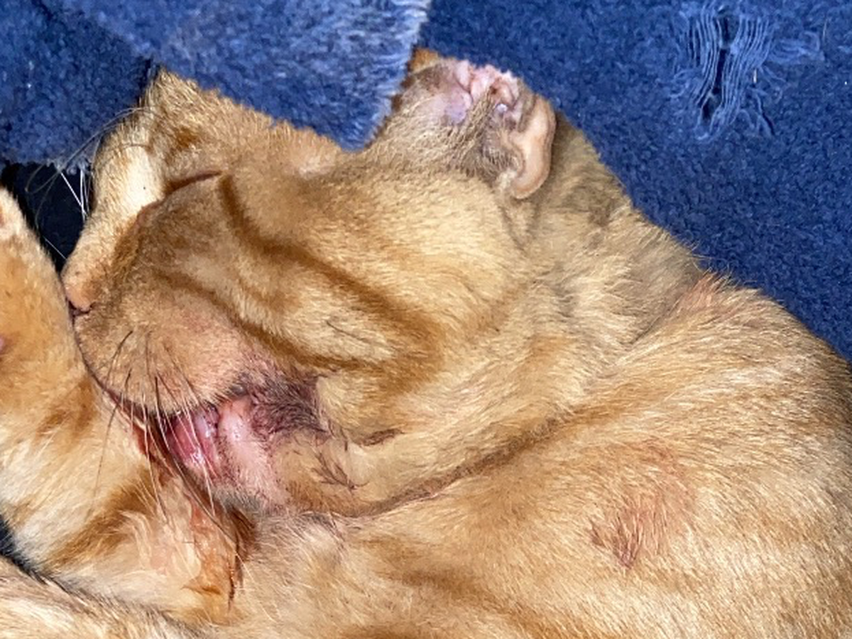 The morning of September 17, Cheddar was attacked and beaten. Our vet suspects that he was kicked or hit with some type of rod or bat. He has a fractured mandible and some lung bruising, which could be serious. The full treatment may cost $900, a price my family and I can't afford. I spent $600 of my own savings for his exam and have nothing left. I am heartbroken right now and have no support for him. He's a playful boy, and seeing him like this is heartbreaking. I'm fresh out of the hospital this week and now my baby is in this horrific state and I can't bear the thought of losing him now more than ever. I only have this week to get him the surgery he needs before scar tissue forms, which will keep him from healing correctly.
