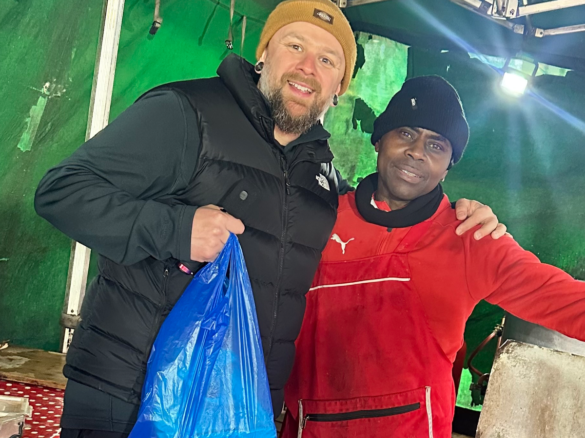I travel the world and make YouTube videos. Around 18 months ago I made a video in Brixton London and was given an incredibly warm welcome by the Jamaican community in the area. One of the wonderful locals in my video was a street cook named Oneil. He is a man of faith who has an energy and positive spirit that literally brightens your day. He cooks honestly some of the most mouth watering Jamaican cuisine I've ever tasted from a temporary stall in the centre of the iconic Electric Avenue in Brixton. He is also passionate about giving free meals to homeless people who need them. When I returned to Brixton recently I found Oneil still cooking the same exceptional food from the same makeshift stall.