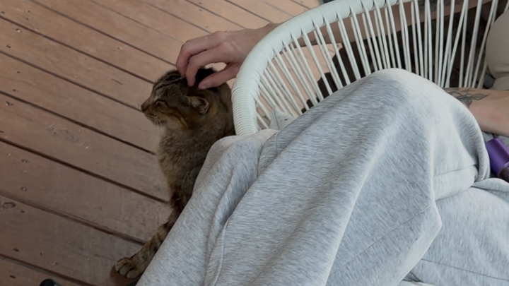 Chester showed up on my porch the day I moved into my first house, and he’s been my loyal companion ever since. After a long day at work, there’s nothing better than sitting outside, sharing a quiet moment and a cold beer with my buddy. Chester is always there to greet me, purring the second I walk up and waiting patiently for head scratches. He’s the sweetest stray cat I’ve ever met, and he loves so hard.