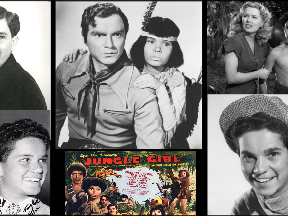 Who hasn't enjoyed spry, curly-haired actor Tommy Cook? As a child, Tommy's most famous roles happened during his nascent career in serial adventures. He came on the feature film scene in the role of young Indian boy, Little Beaver alongside western good guy 'Don 'Red' Barry' in the Adventures of Red Ryder (1940) and followed that portraying Kimbu, the young jungle boy, alongside Frances Gifford's heroine Nyoka in Jungle Girl (1941).
