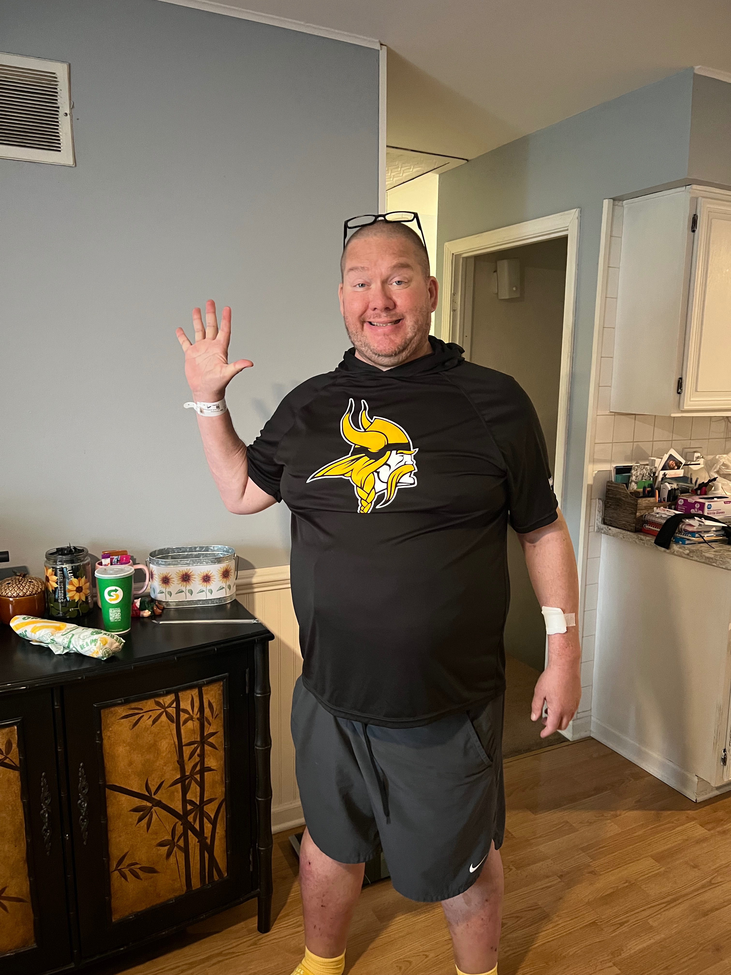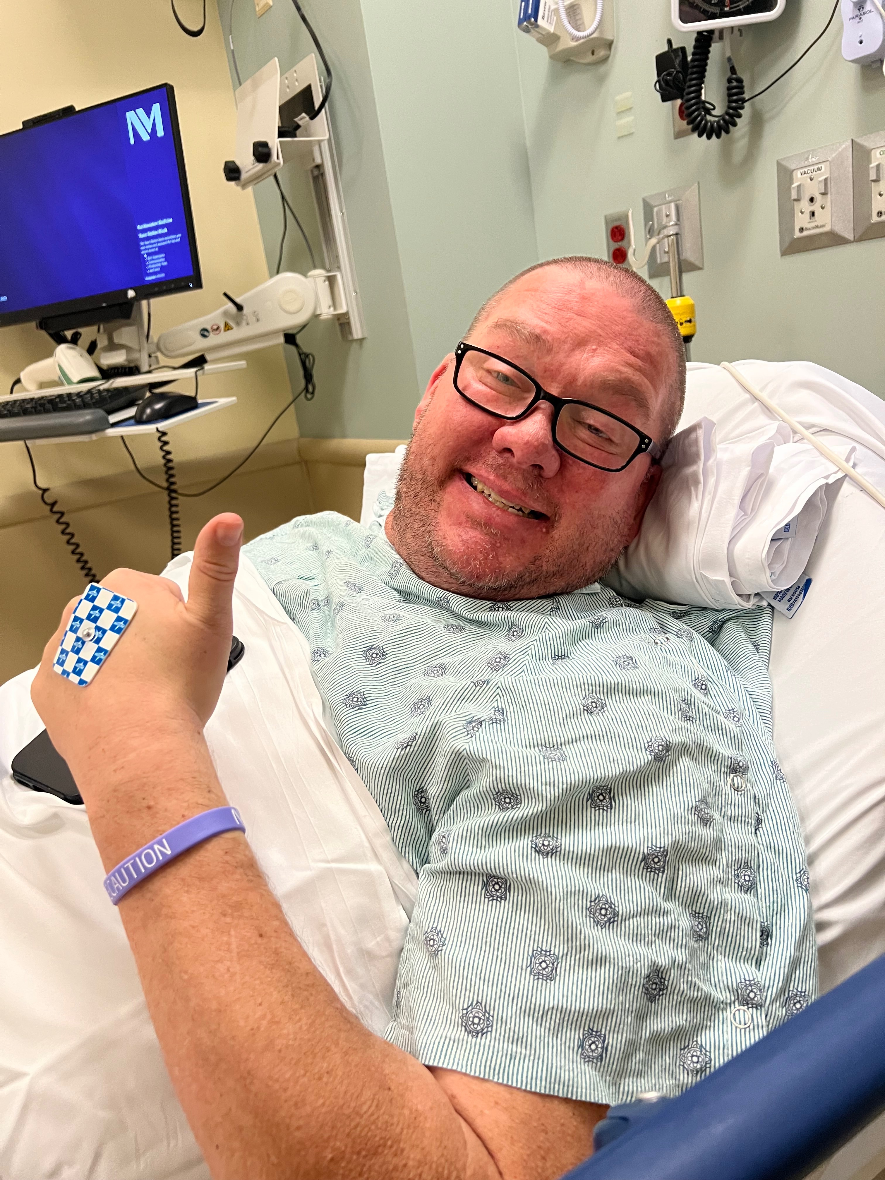 Despite making significant lifestyle changes, Chris’s condition has continued to worsen. He is now in Stage 5 Chronic Kidney Disease (Kidney Failure), with his kidney function at less than 10%. Over half of his kidneys are permanently damaged and won’t recover. In June, his symptoms worsened, and he began dialysis immediately. Since then, he’s been in and out of the hospital, facing multiple surgeries and complications.