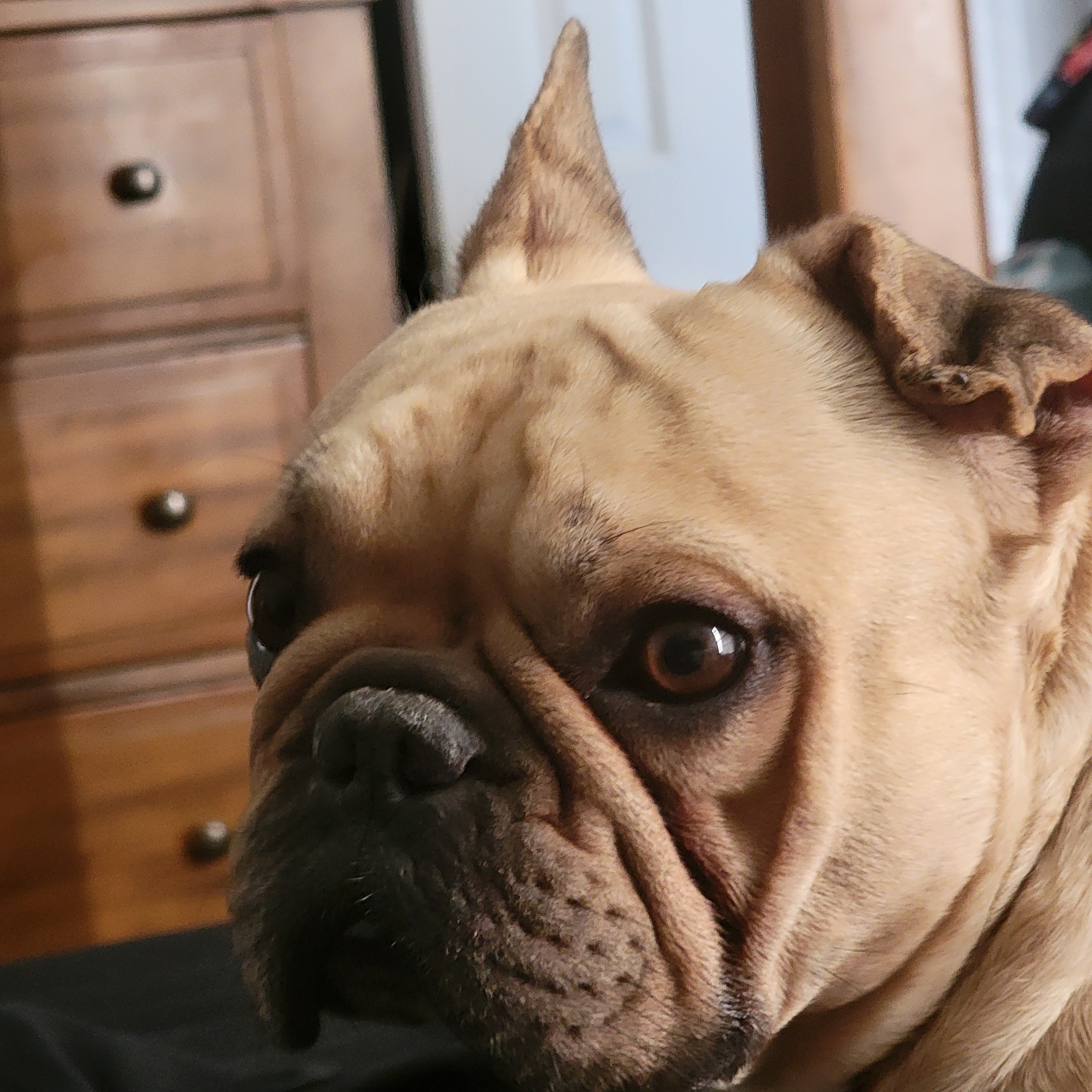 Chunk wasted no time making himself at home. This little 26 pound gremlin has the personality of a grown man who pays bills. He's equal parts stubborn, sweet, dramatic and absolutely convinced he runs the household.