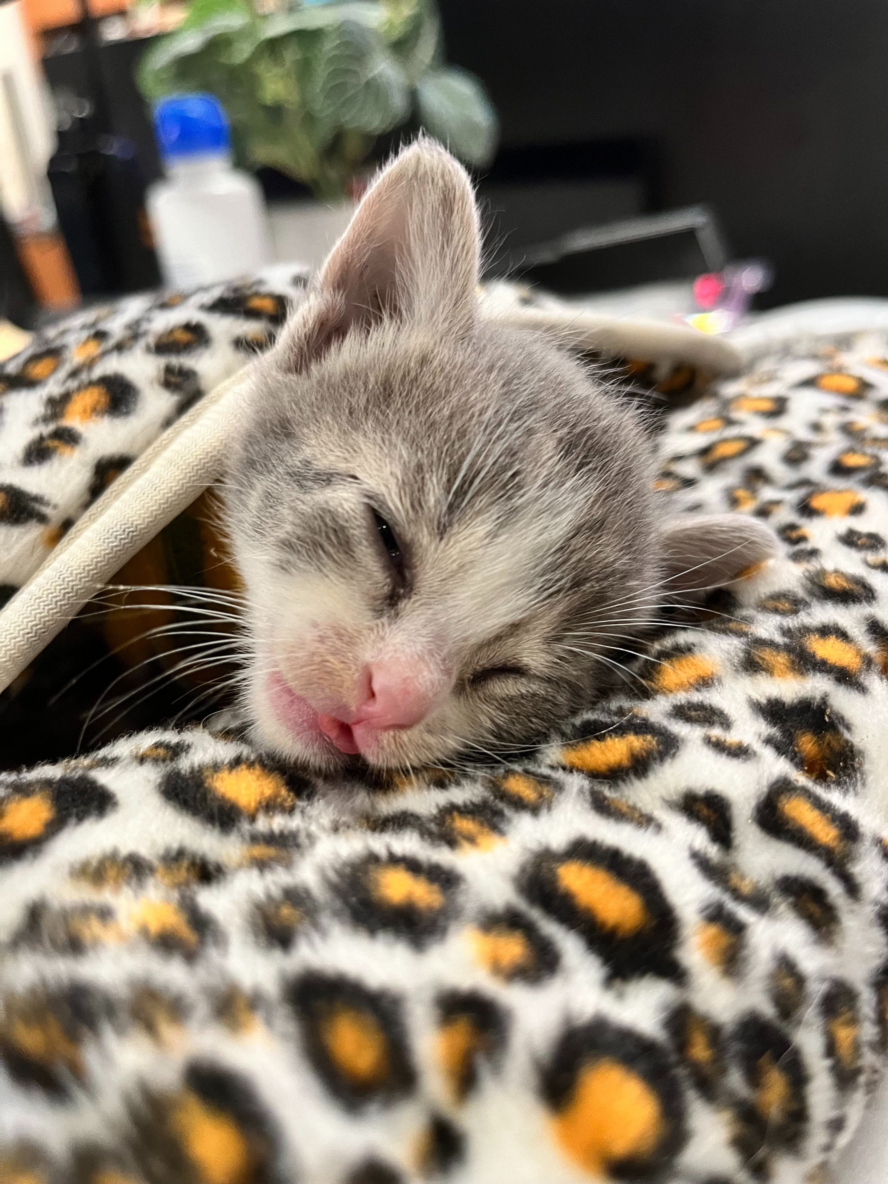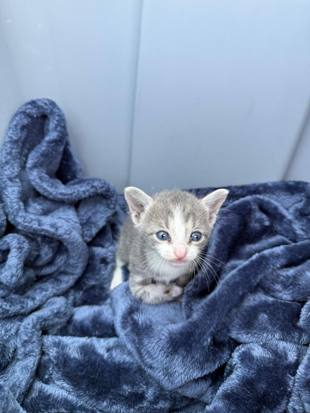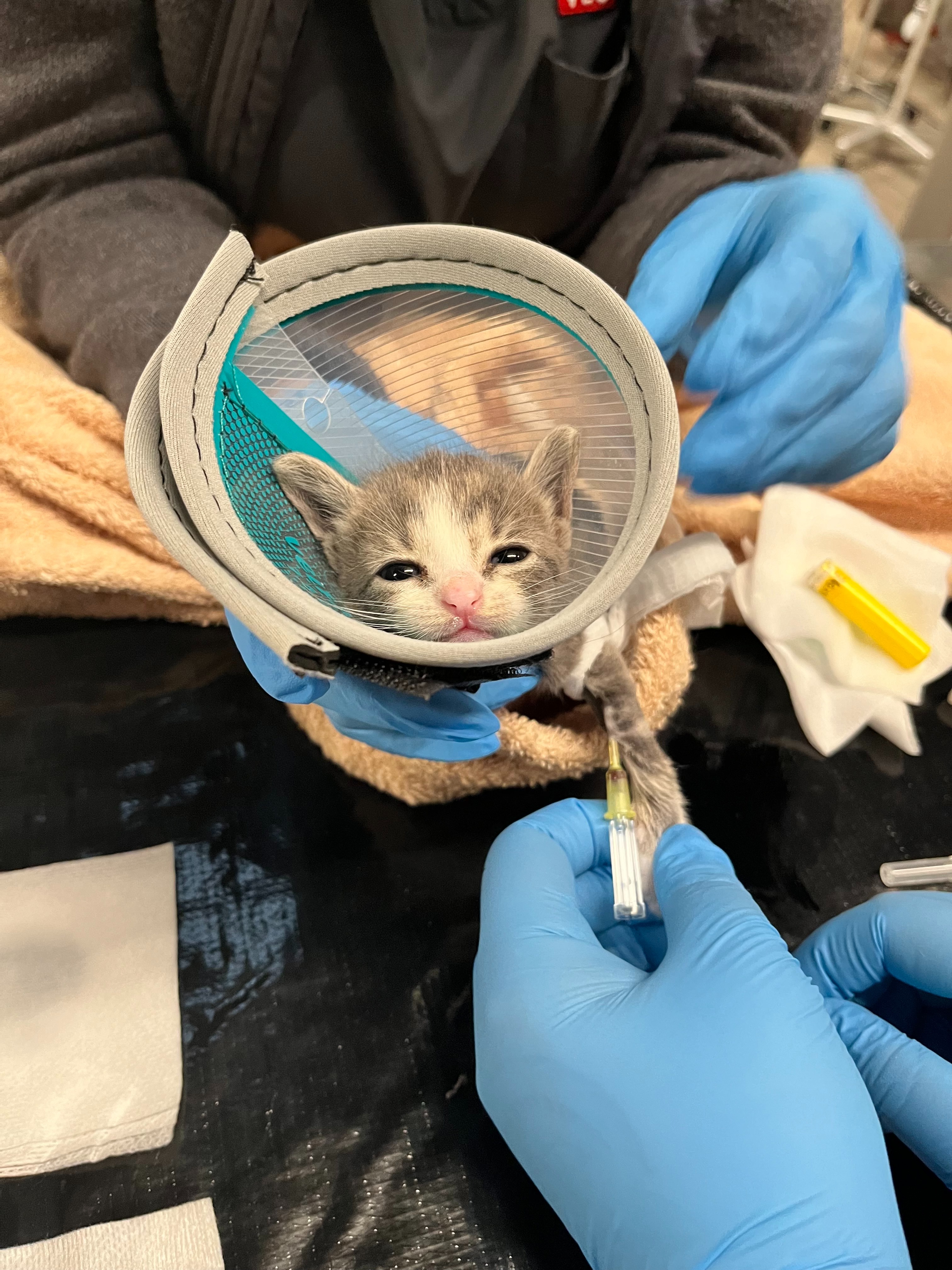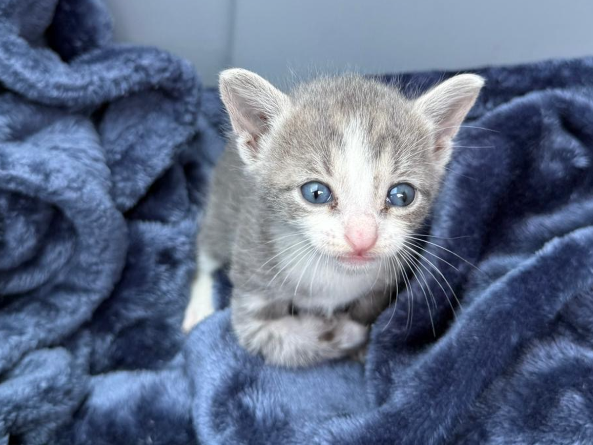 We were contacted about a devastating emergency. A couple walking their dog discovered a tiny kitten—her head sticking out of a rat trap wedged between two houses. When they pried it open, they found her paw crushed in the clamp, her leg swollen, twisted, and mangled. She was so weak, covered in her own waste, likely trapped and suffering for more than a day. She refused food and water, trembling in pain, her delicate skin peeling from the injury.