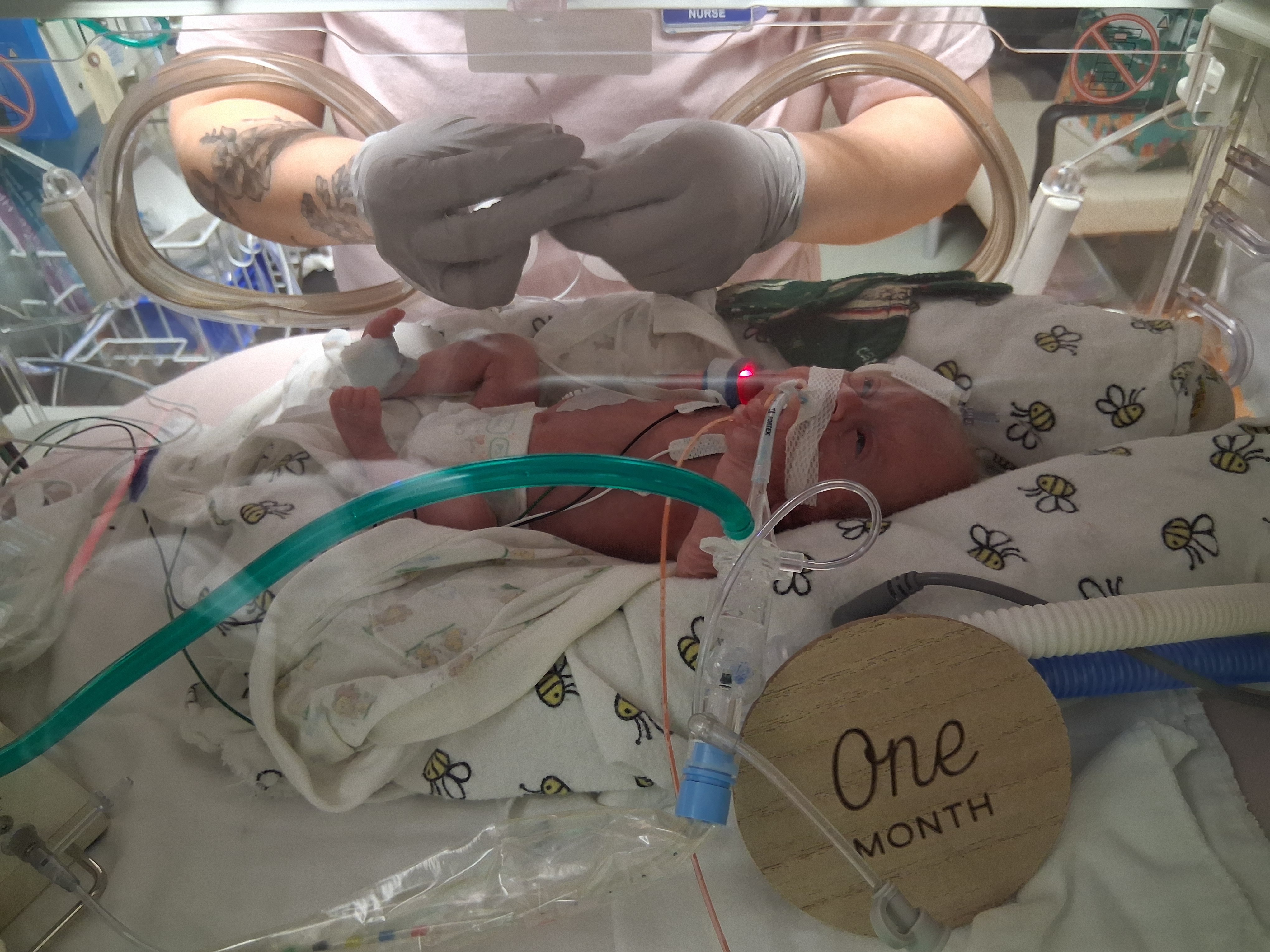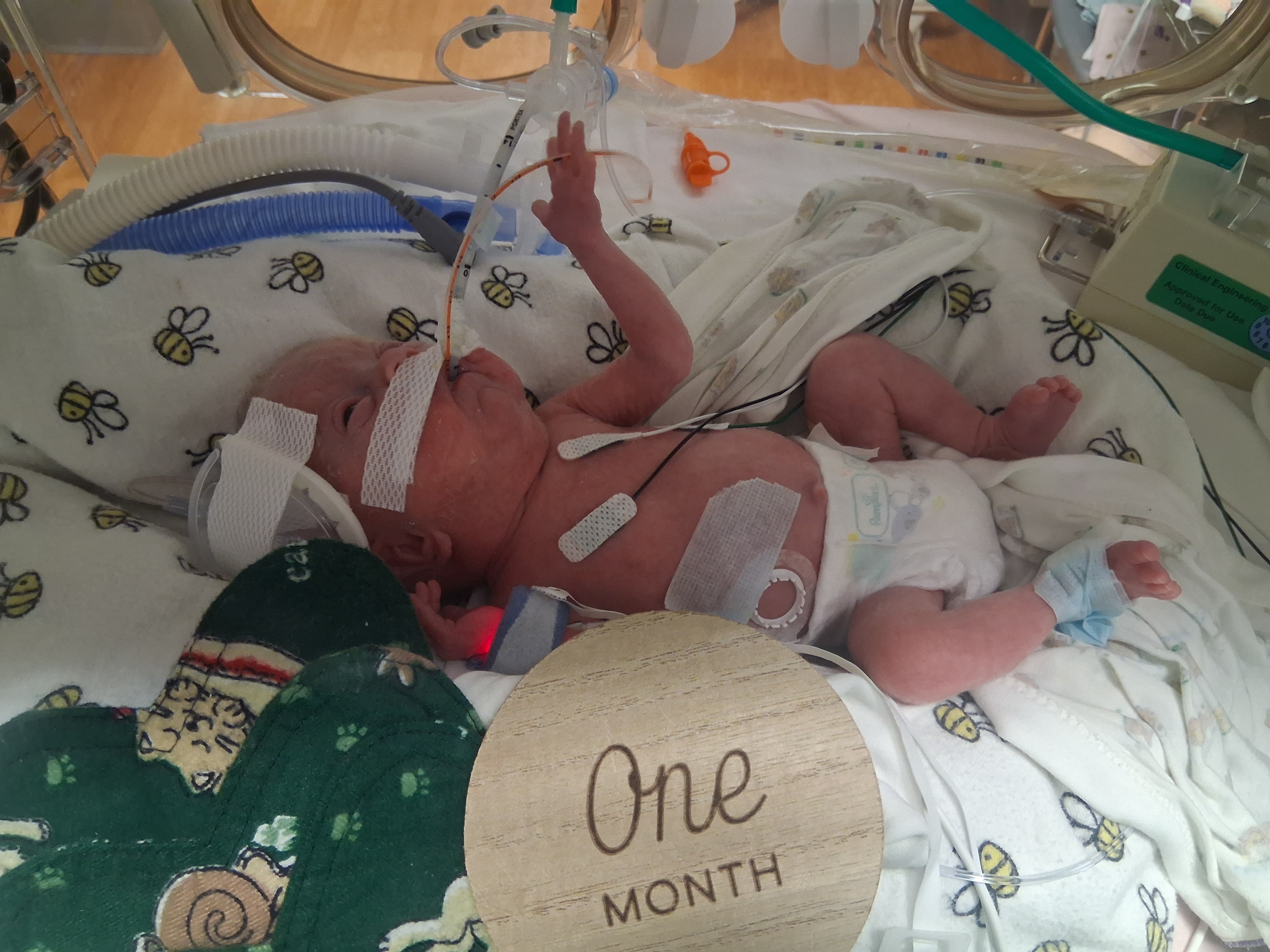 Dad has finally got to hold her, and now mom and dad are able to hold her about once a day if Clara is having a good day and can handle being moved around that day, she is the boss after all being born early and stuck in the tiny box.