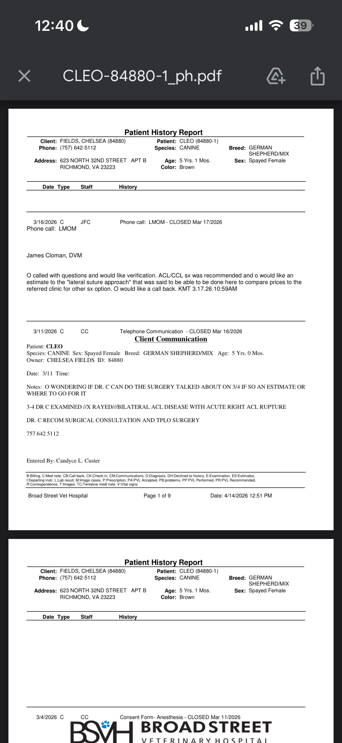 Recently, Cleo suffered a CCL tear, and she needs surgery to recover. It’s heartbreaking to see her in pain, and I want nothing more than to make sure she gets the proper treatment she needs. The cost of surgery is more than I can afford right now, and I would hate to have to consider other measures simply because I can’t pay for it. Cleo deserves the chance to heal and get back to her playful self.