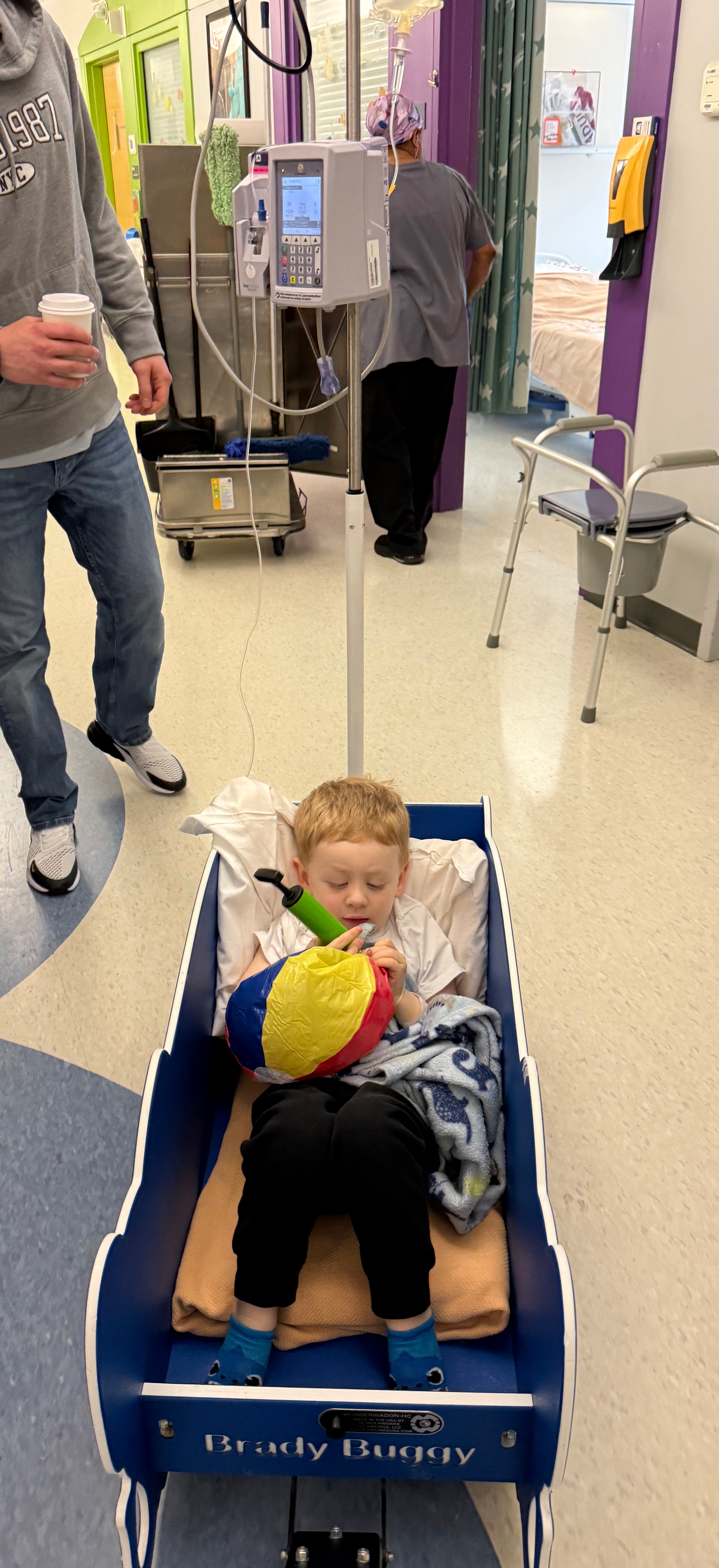 “We took Cohen to the ER at Maine General for leg pain and limping on 05/18. They did blood work where they found his white blood cell counts, platelets and hemoglobin were low. They transferred him to Barbara Bush Hospital on 05/19 for possible Leukemia. We were sent home on 05/22 with a diagnosis of transient synovitis but his counts were still low so they wanted to repeat lab work a week later to see if things have improved. The repeat labs showed no improvement. On June 3rd, Cohen had a bone marrow biopsy and more labs done. While waiting for the results of the biopsy, the nurse came rushing out saying that Cohen needed a transfusion as his hemoglobin dropped significantly along with his other cell lines. They found blasts in his blood which they stated was consistent with leukemia but needed the bone marrow biopsy results before they could be sure. After we received the bone marrow results, the pathologist stated there were no signs of leukemia, but there were abnormal cells in his bone marrow which they needed to further investigate. The oncologist ordered a stat CT scan which showed a large mass on Cohen’s adrenal gland which would be consistent with neuroblastoma. Again, they needed the bone marrow biopsy to confirm some other details. After receiving the bone marrow biopsy results from the pathologist, they then confirmed that Cohen has stage 4 high risk neuroblastoma. This is a rare cancer that only affects up to 650 children per year under the age of 5.