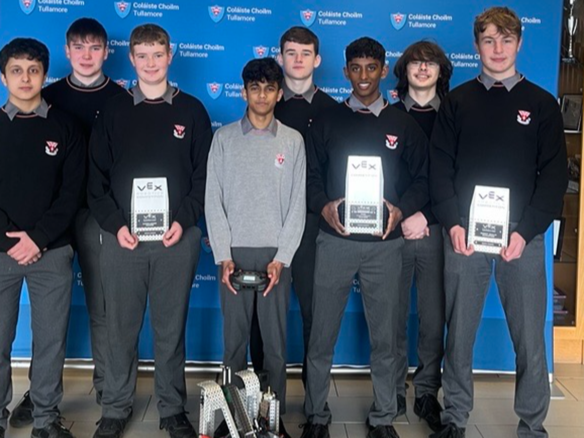 This year, Coláiste Choilm Tullamore has qualified to represent Ireland in the World VEX Robotics Championship in Dallas Texas USA, becoming the first team from the Midlands to compete at the V5 level.