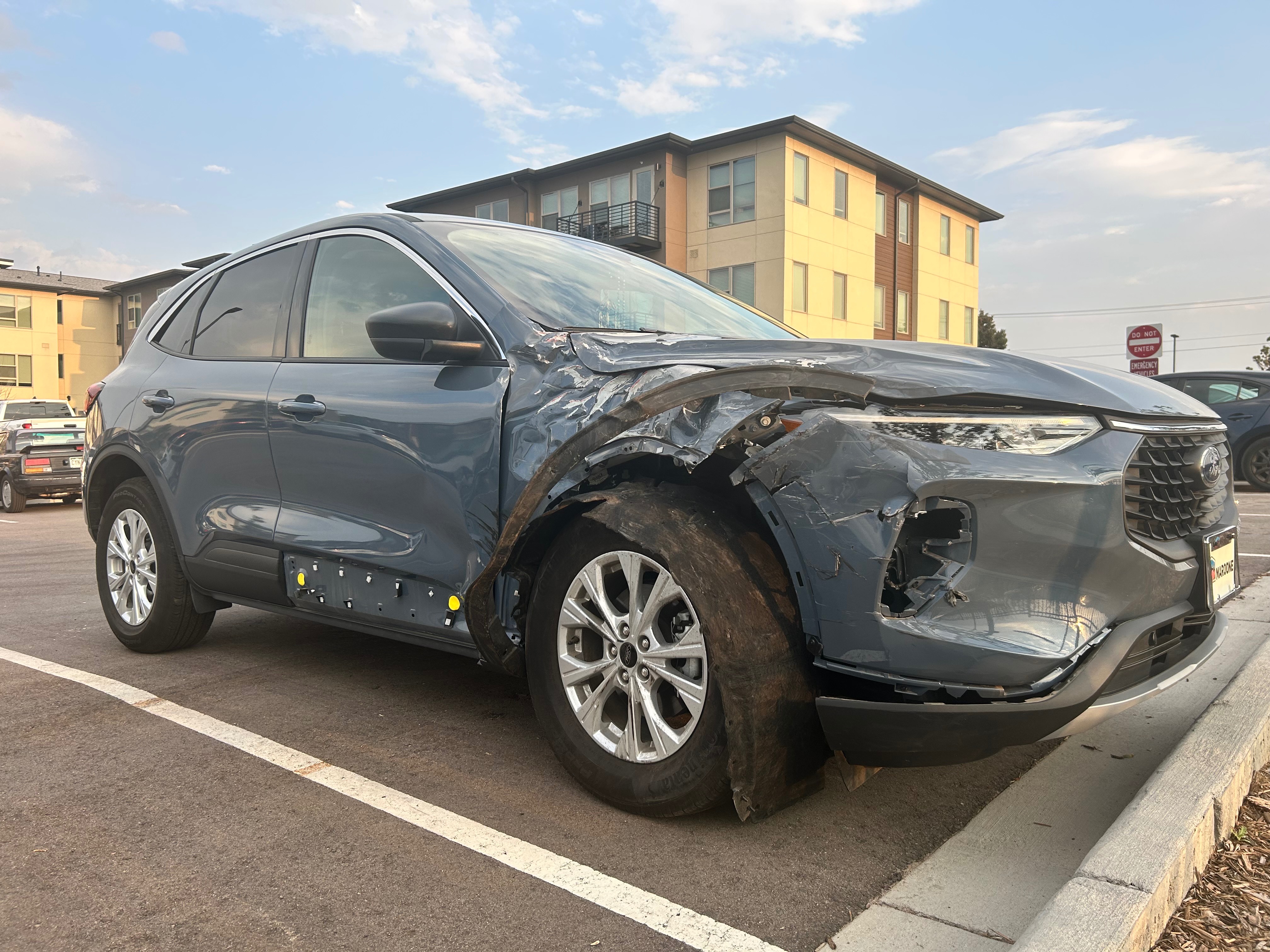 On Friday, September 5, around 7:21 PM in Aurora, CO, I was delivering food for DoorDash when at Racine and 11th Ave, an ambulance with no sirens or lights ran the stop and crashed into the passenger side of my new Ford Escape. To be honest, I didn’t even need a new car, but the last one I bought used broke down with $14K still left on it. The dealer offered to pay it off which then almost doubled my payments, thus my reason for working multiple jobs to afford the new expense.