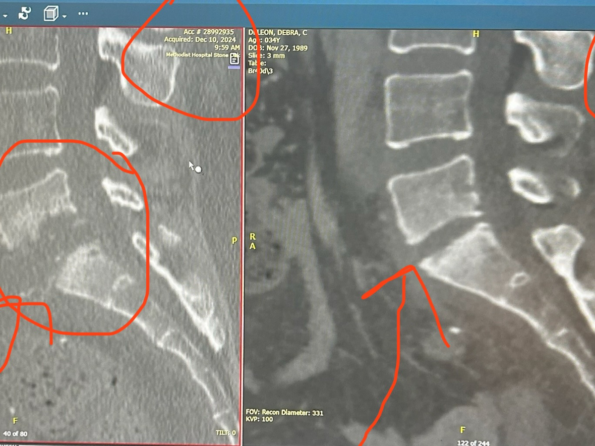 Findings of that MRI showed she had a severe spinal infection that had now gone to the bone, affecting the vertebrae L5, S1 in her lower back. At that point, she was immediately admitted into the hospital with major antibiotics, weeks of hospital stays, acute rehabs, and rehab hospital stays. She missed her birthday, Thanksgiving, and Christmas in 2024.